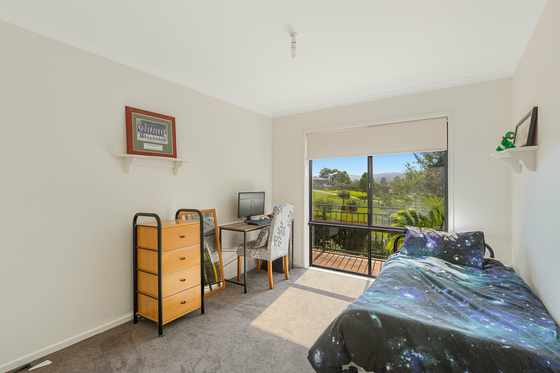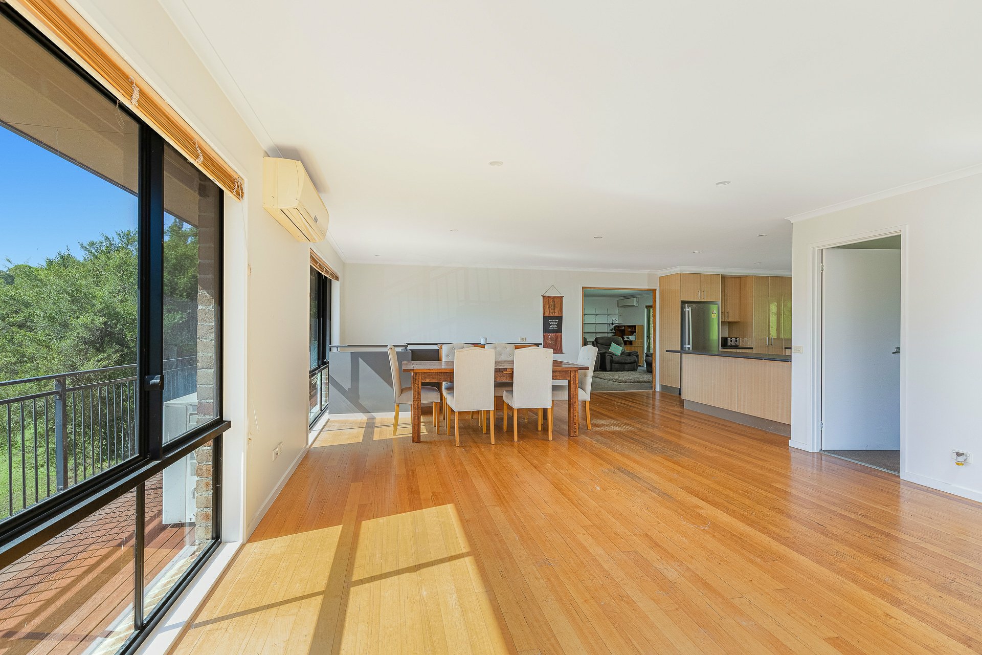 At the heart of the home, a large kitchen overlooks the dining and living area and captures the stunning outlook across the surrounding landscape, making it a perfect place to cook, gather and connect with family and friends. Timber floorboards flow through the common areas, adding warmth and character, while the bedrooms are comfortably finished with carpet.