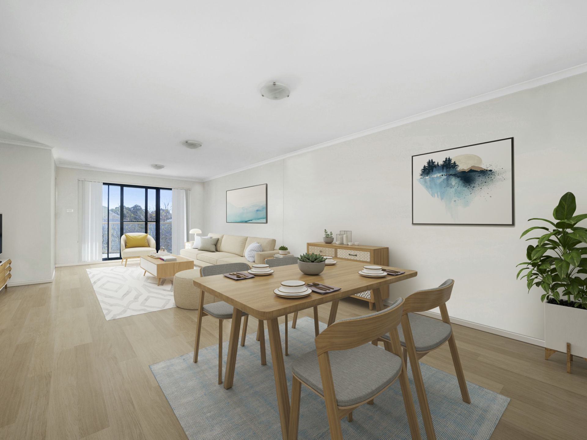 • An open plan, north facing living area with a light airy ambiance, tall ceilings and a large front balcony that welcomes the winter sun into the home