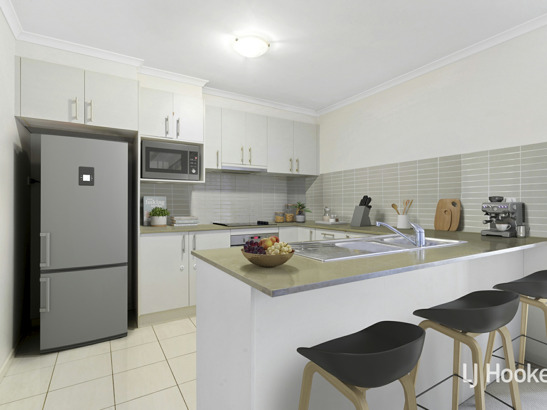 • Located at the heart of the home is a full-sized kitchen with stone benchtops, modern cooking appliances, a dishwasher, and ample space to cook and entertain