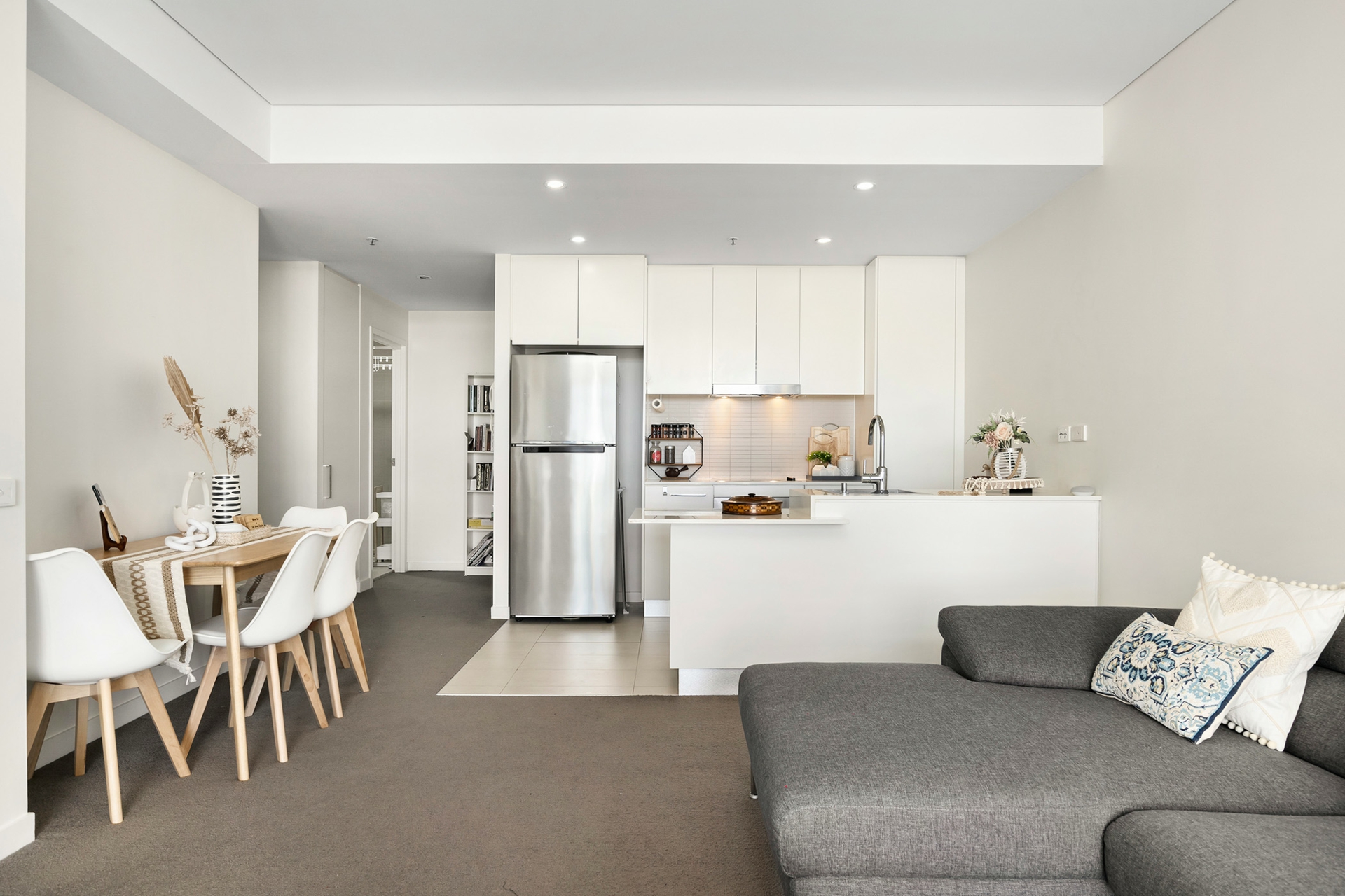 Set across 76sqm, the spacious living/dining area is perfect for entertaining, with ample room for a large lounge suite and recreation area, all bathed in natural light streaming through expansive windows.