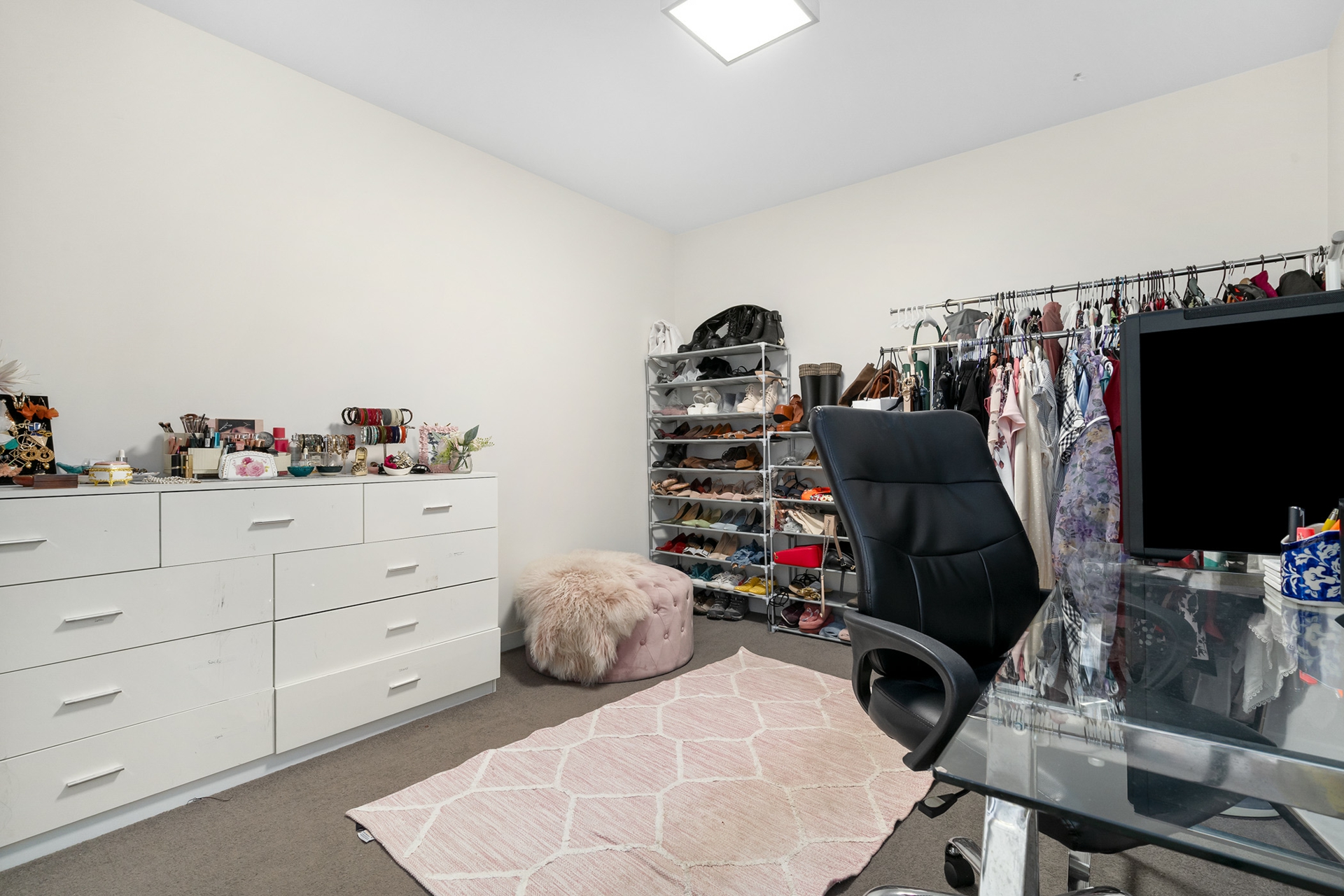 The versatile second bedroom can serve as a study, guest room, or additional living space, accommodating a double bed with ease.