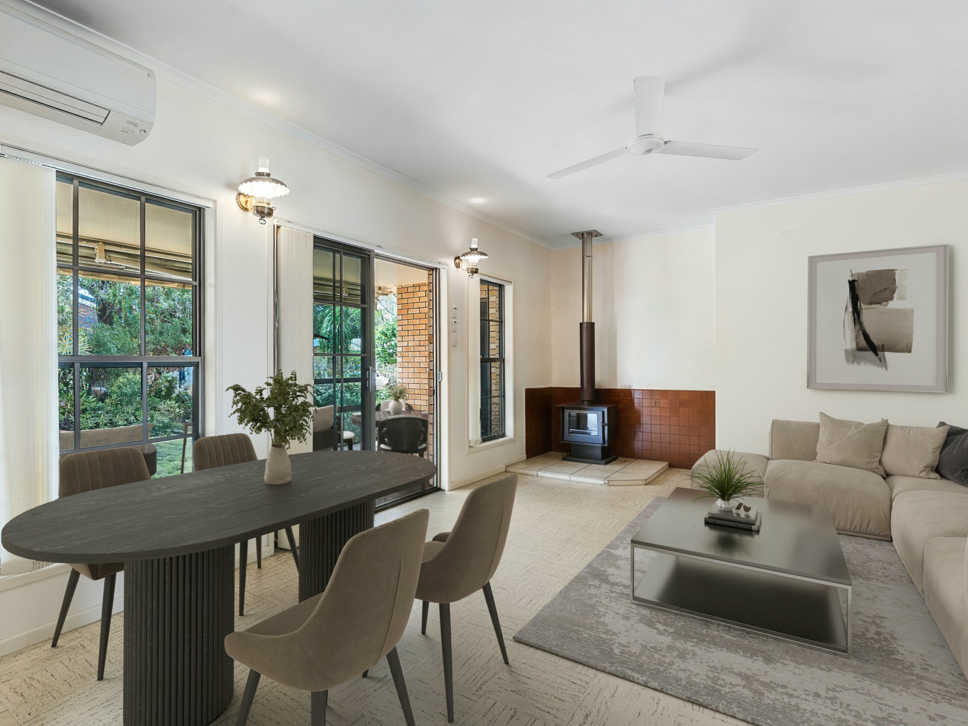 Accommodation includes three generous bedrooms with built-in wardrobes, two bathrooms, and multiple living zones, a formal dining area plus a cozy lounge complete with a fireplace. The inviting front porch and covered outdoor entertaining area provide the perfect spaces for relaxing or hosting family and friends.