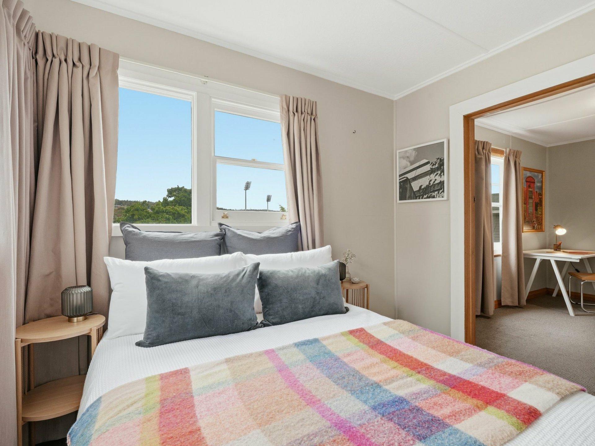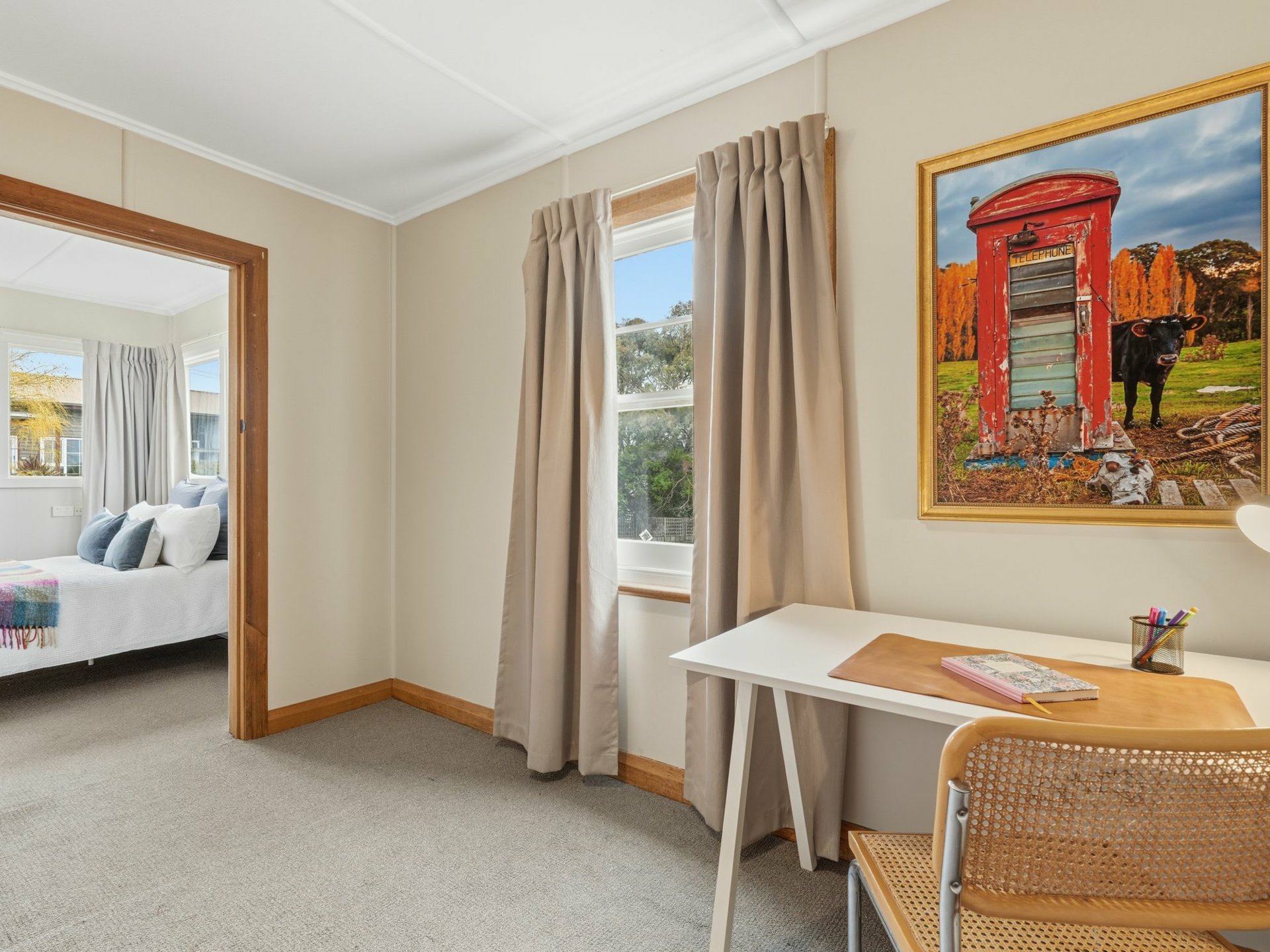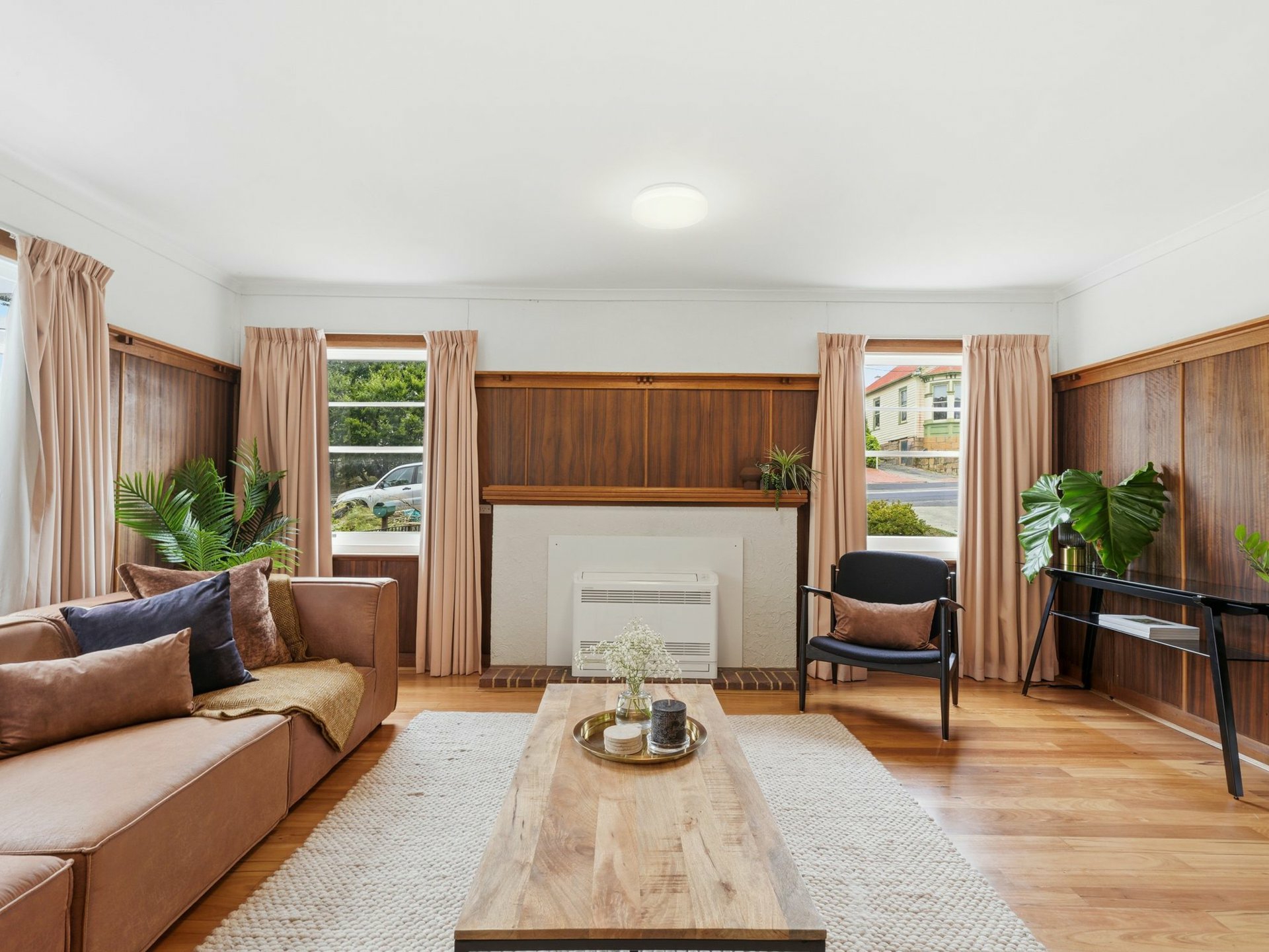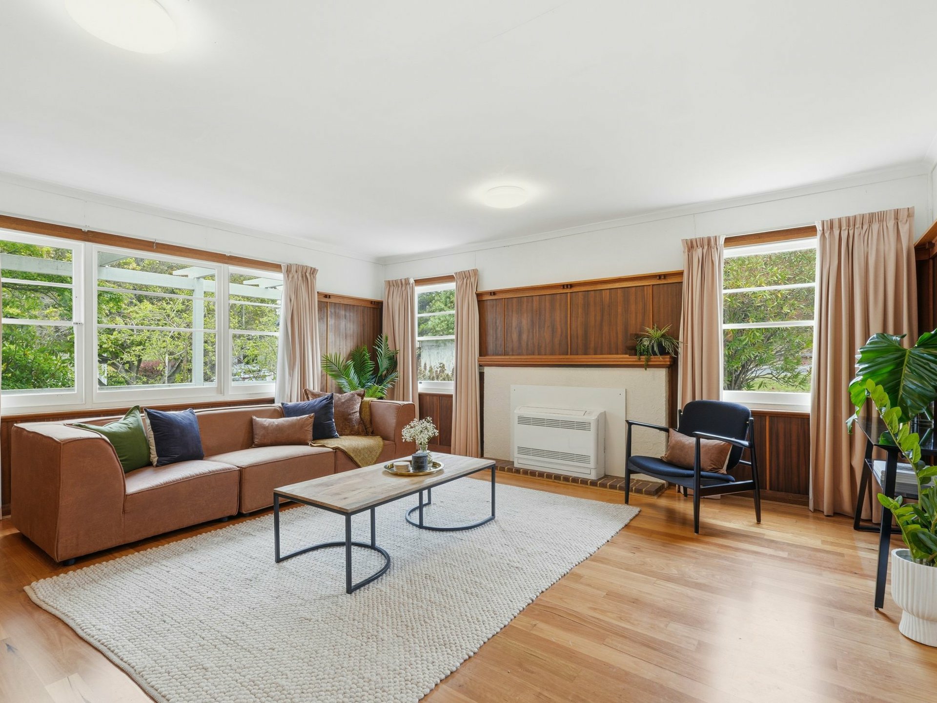 The home is filled with natural sunlight throughout the day, enhancing the warmth of its original timber features and polished Tasmanian Oak floorboards. Currently configured as three to four bedrooms, with an additional study, sunroom or flexible living space, the layout is generous and highly adaptable - easily reworked to suit modern living while respecting the home\u8217?s mid-century charm. The renovated bathroom, complete with a walk-in shower, adds contemporary comfort in keeping with the home\u8217?s character.
