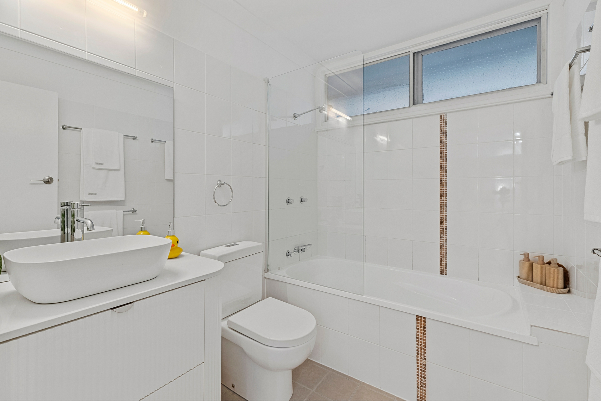 The kitchen offers excellent functionality and generous workspace, featuring electric cooking appliances, a dishwasher and classic subway tile splashback. It connects easily with the living and dining zones, making everyday living and entertaining effortless.