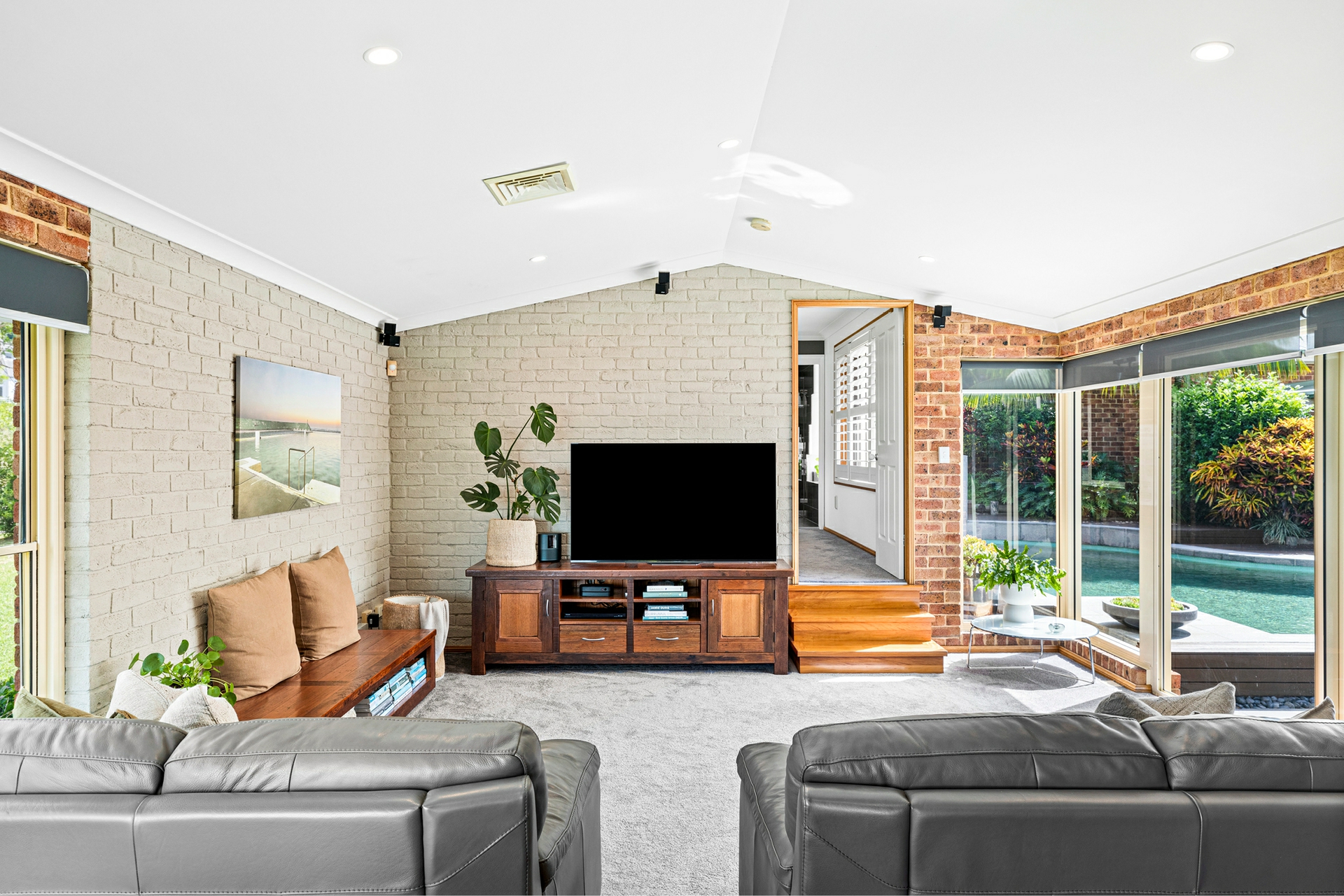 At the heart of the home, a stunning saltwater swimming pool is positioned centrally, with the residence thoughtfully wrapping around it. This unique design creates a striking visual centrepiece while enhancing natural light, airflow, and effortless indoor-outdoor living. Solar pool heating allows for extended enjoyment across the seasons, while manicured gardens with established, low maintenance plantings further enhance the sense of privacy and calm, creating a peaceful sanctuary.