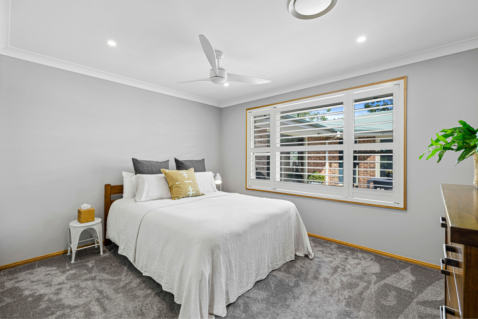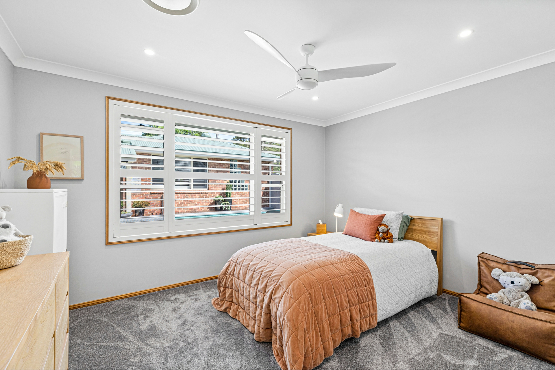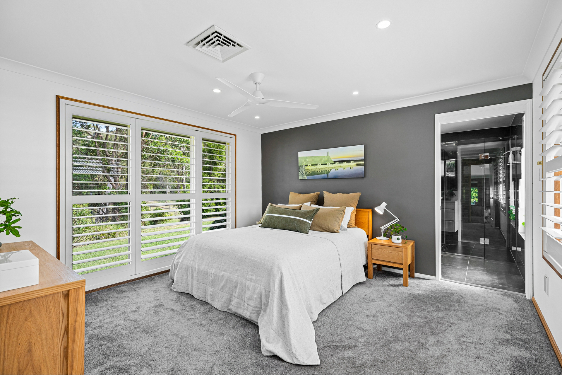 - Four spacious bedrooms, three featuring built-in wardrobes, plantation shutters, ceiling fans, and ducted air-conditioning