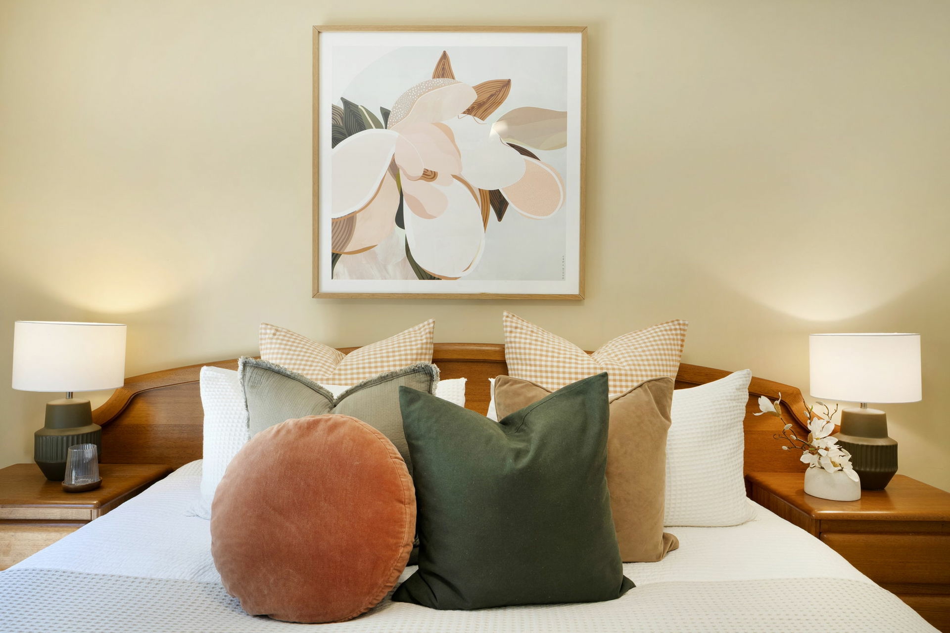•Vaulted ceilings, expansive windows, spotted gum timber flooring, ceiling fans and air conditioning enhance the sense of light and space