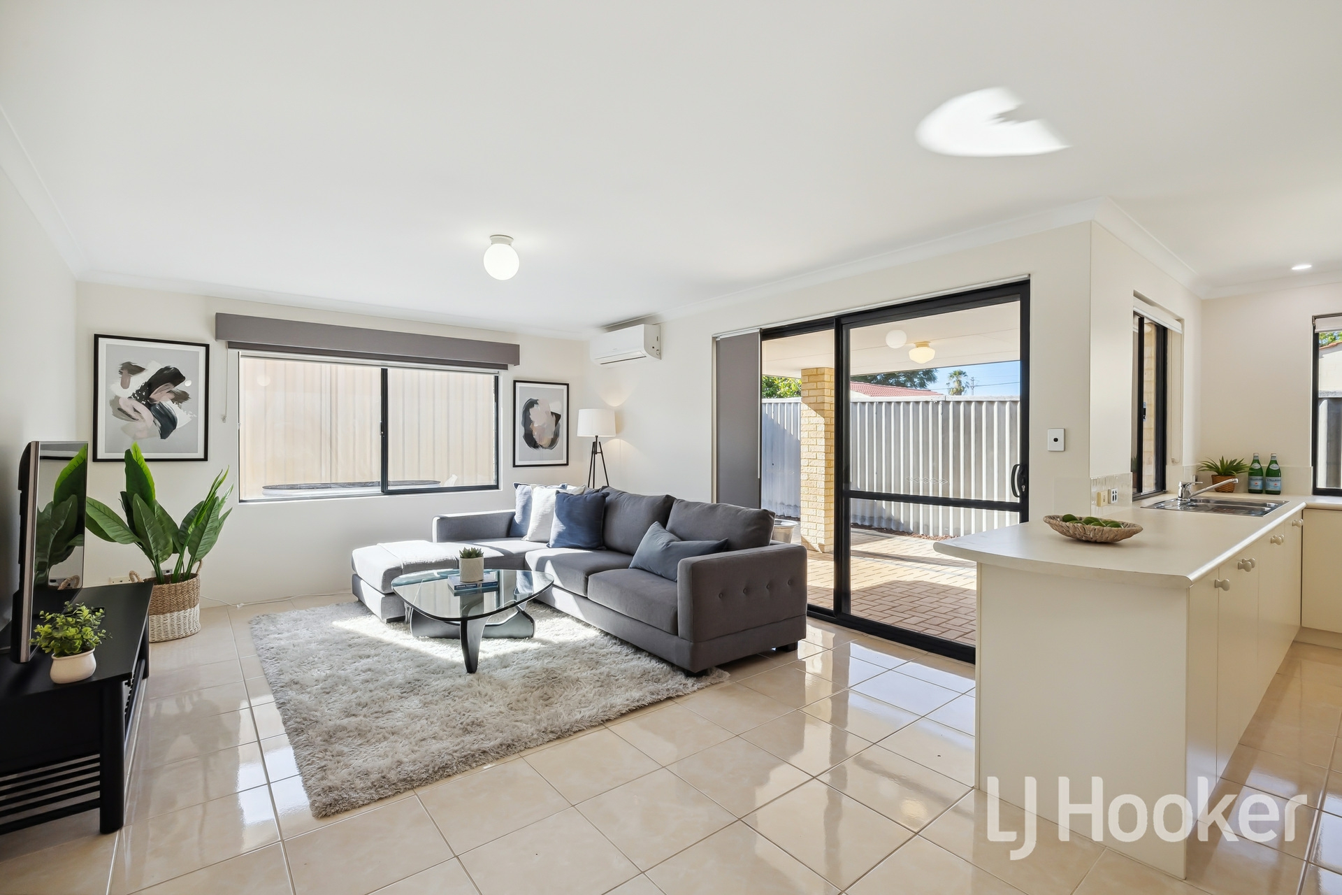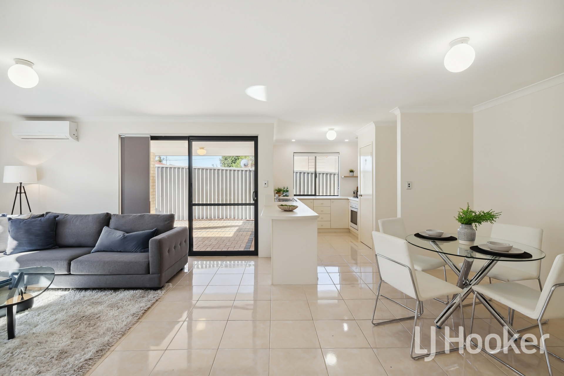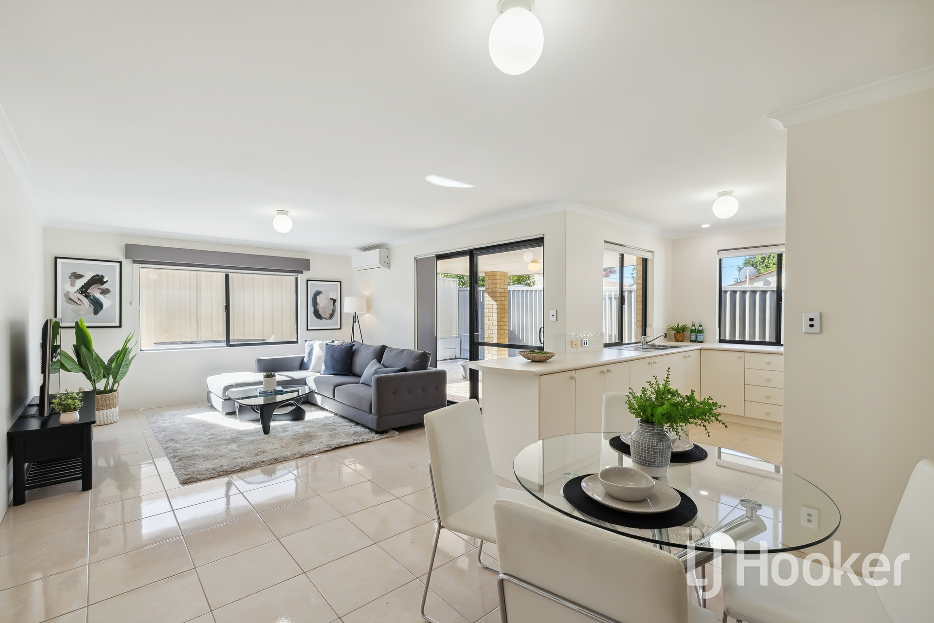 Glide through to the open-plan kitchen, dining, and living area - a space designed for both everyday comfort and stylish entertaining. The sleek porcelain tile flooring adds a touch of elegance, while the modern kitchen, with its quality appliances and contemporary finishes, makes cooking an absolute pleasure.