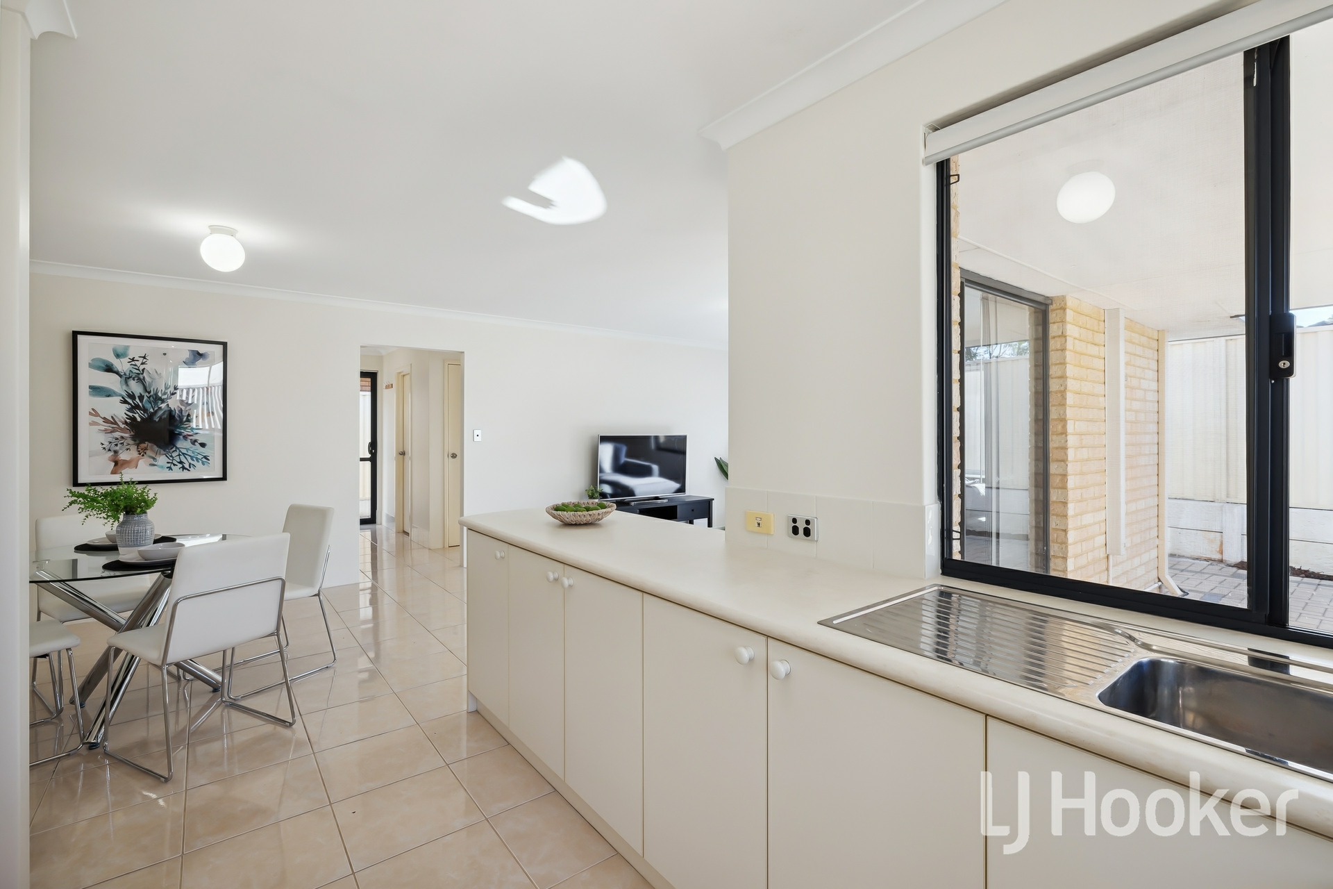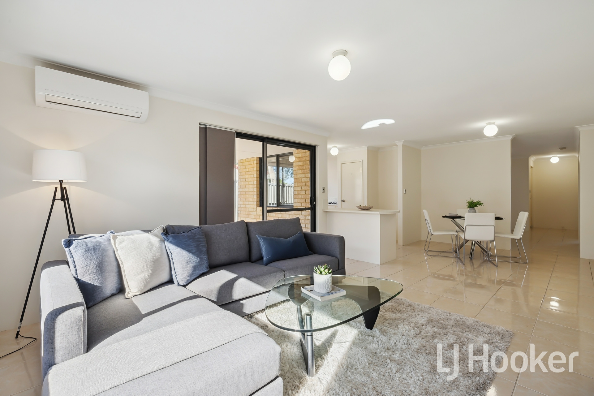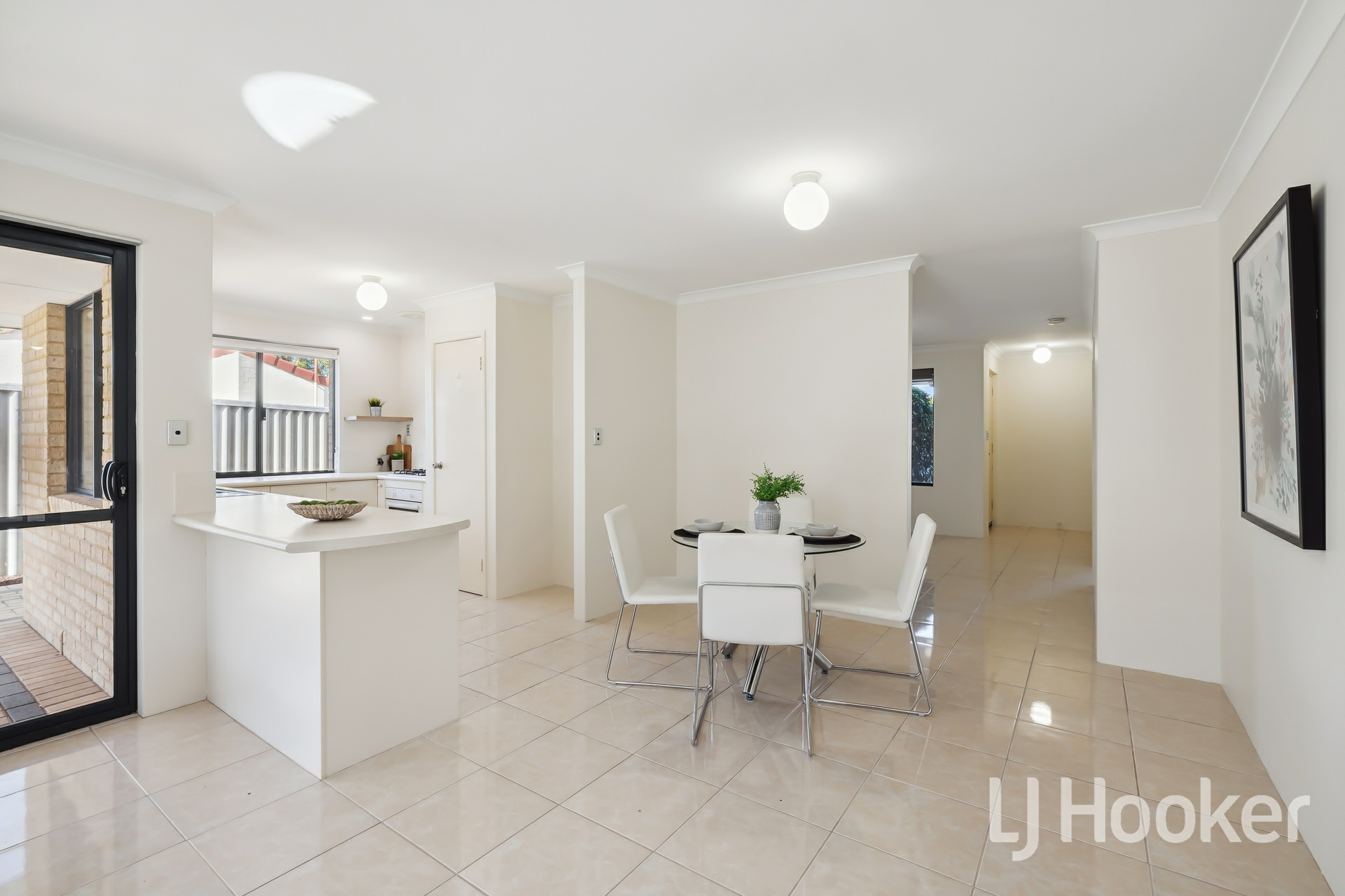 Glide through to the open-plan kitchen, dining, and living area - a space designed for both everyday comfort and stylish entertaining. The sleek porcelain tile flooring adds a touch of elegance, while the modern kitchen, with its quality appliances and contemporary finishes, makes cooking an absolute pleasure.