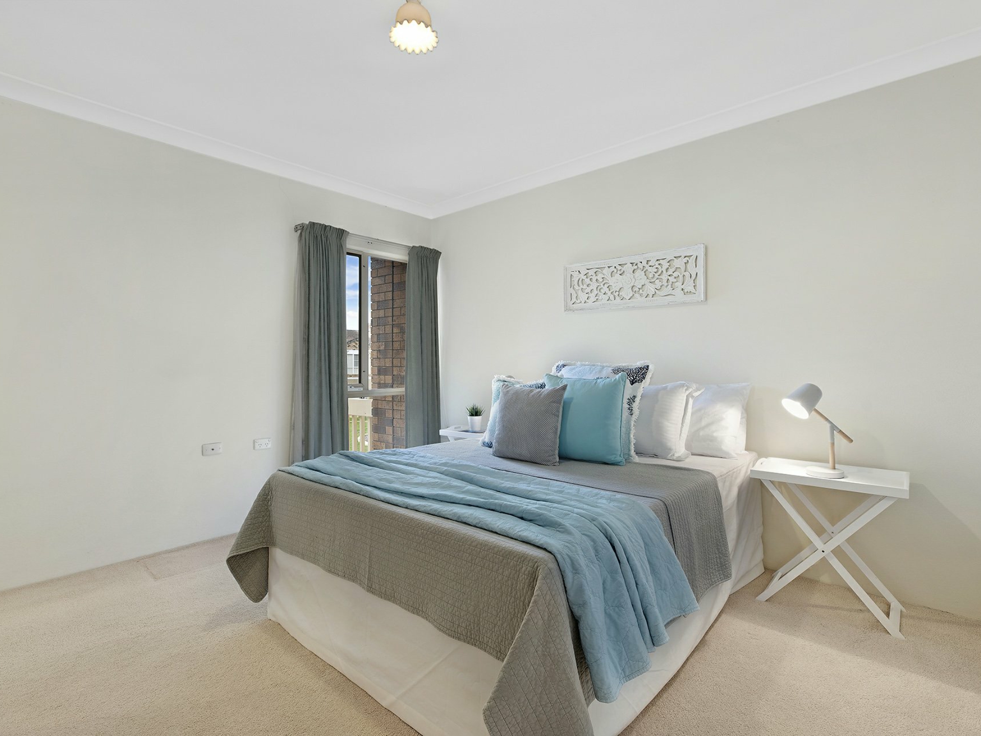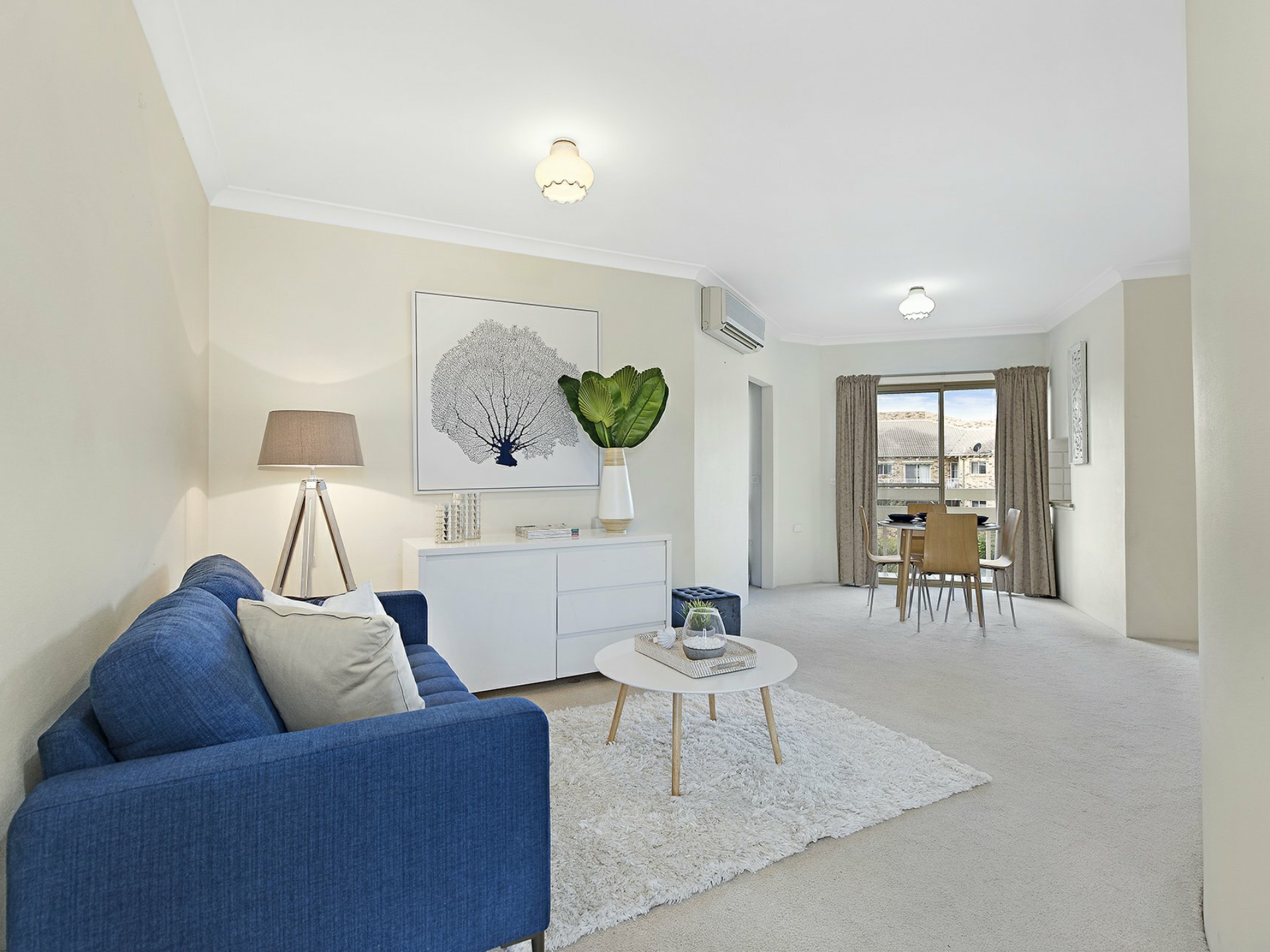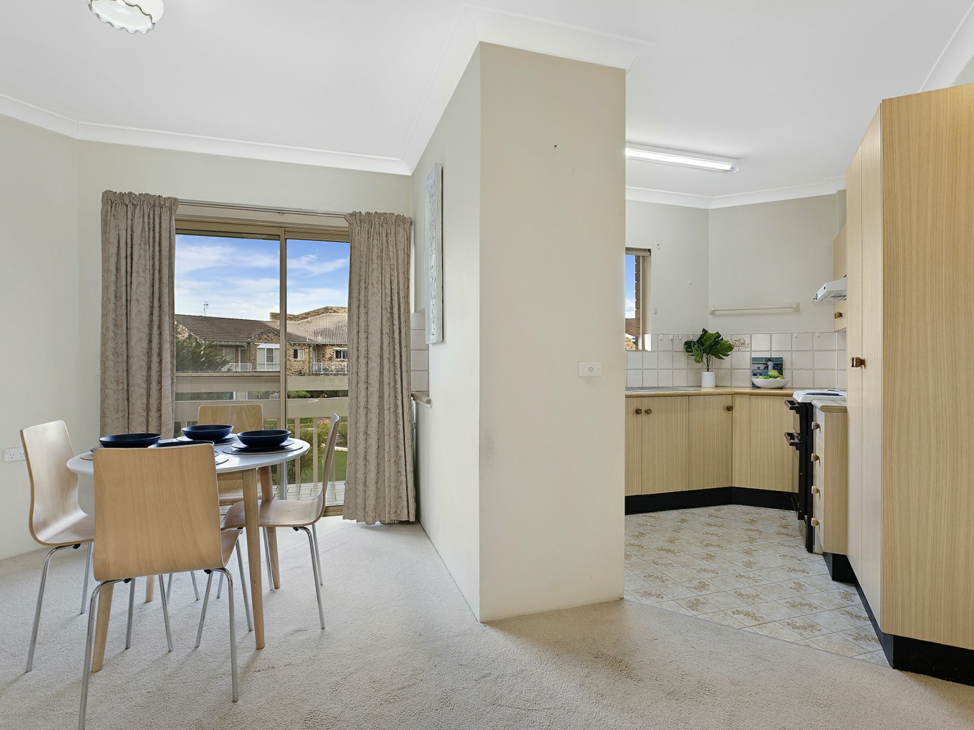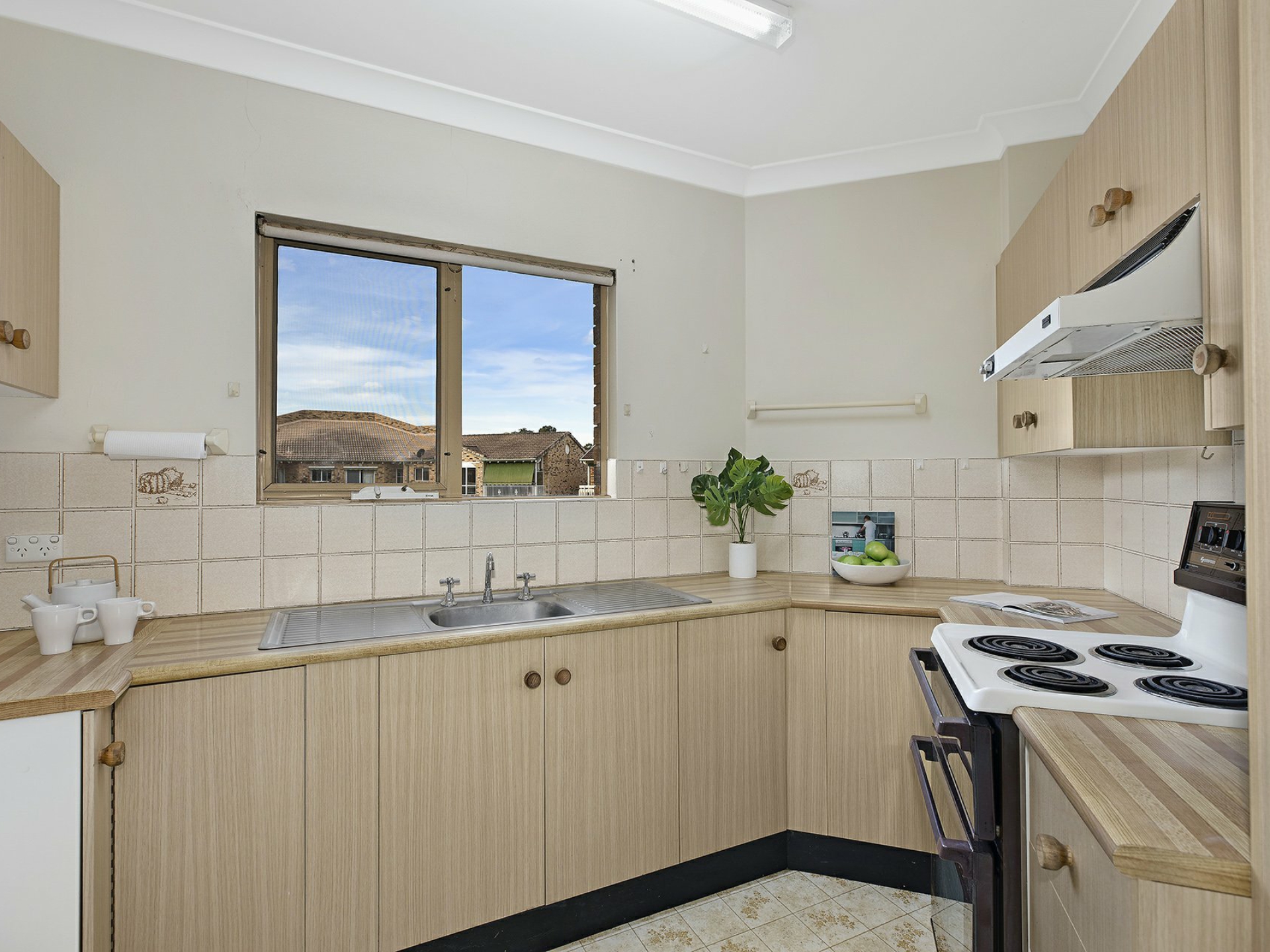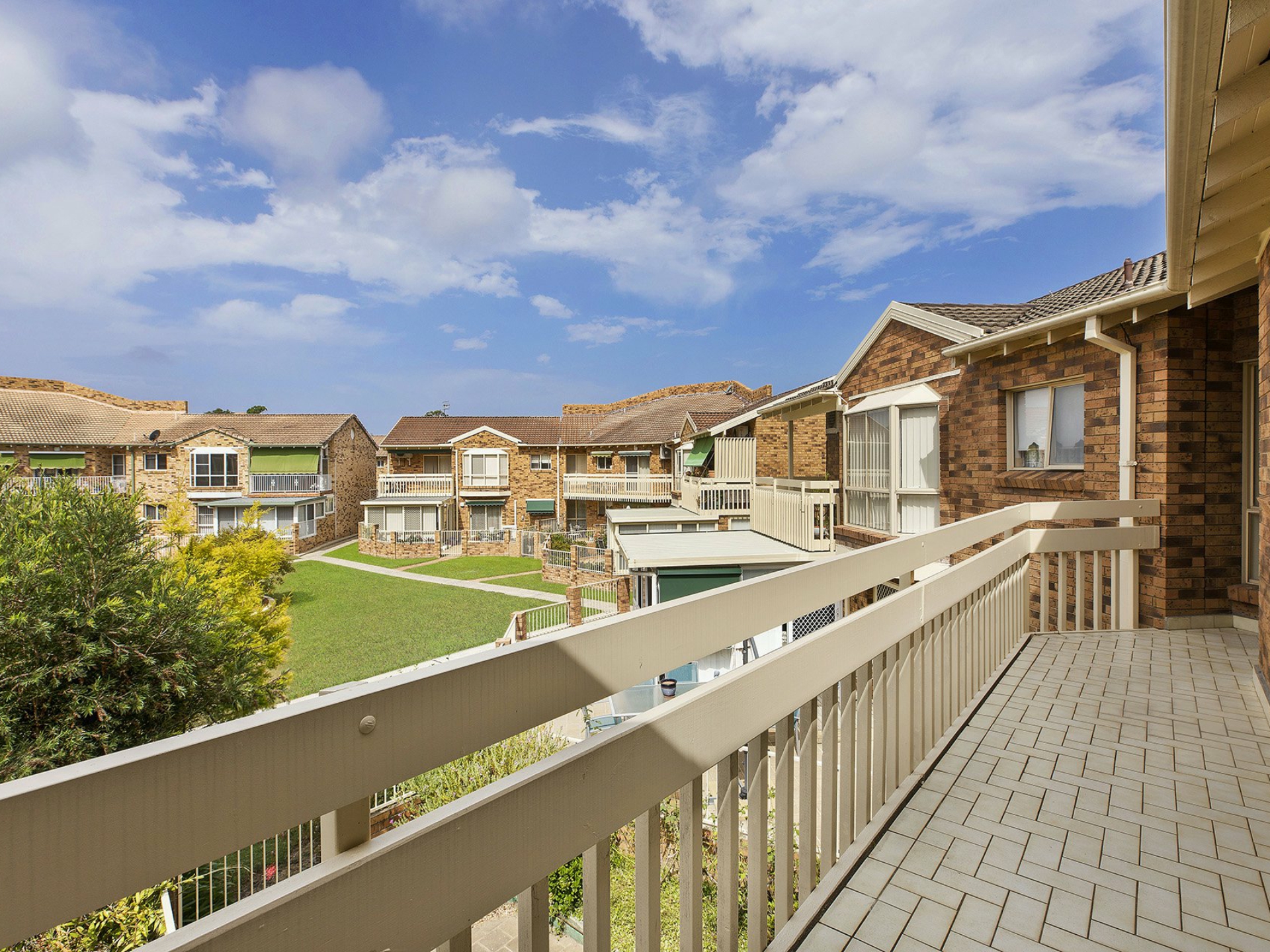Inside is a main living area with air conditioning adjoining the kitchen that also has access to a balcony with a pleasant outlook, two good sized bedrooms with built ins to two and a large bathroom with built in laundry area.
