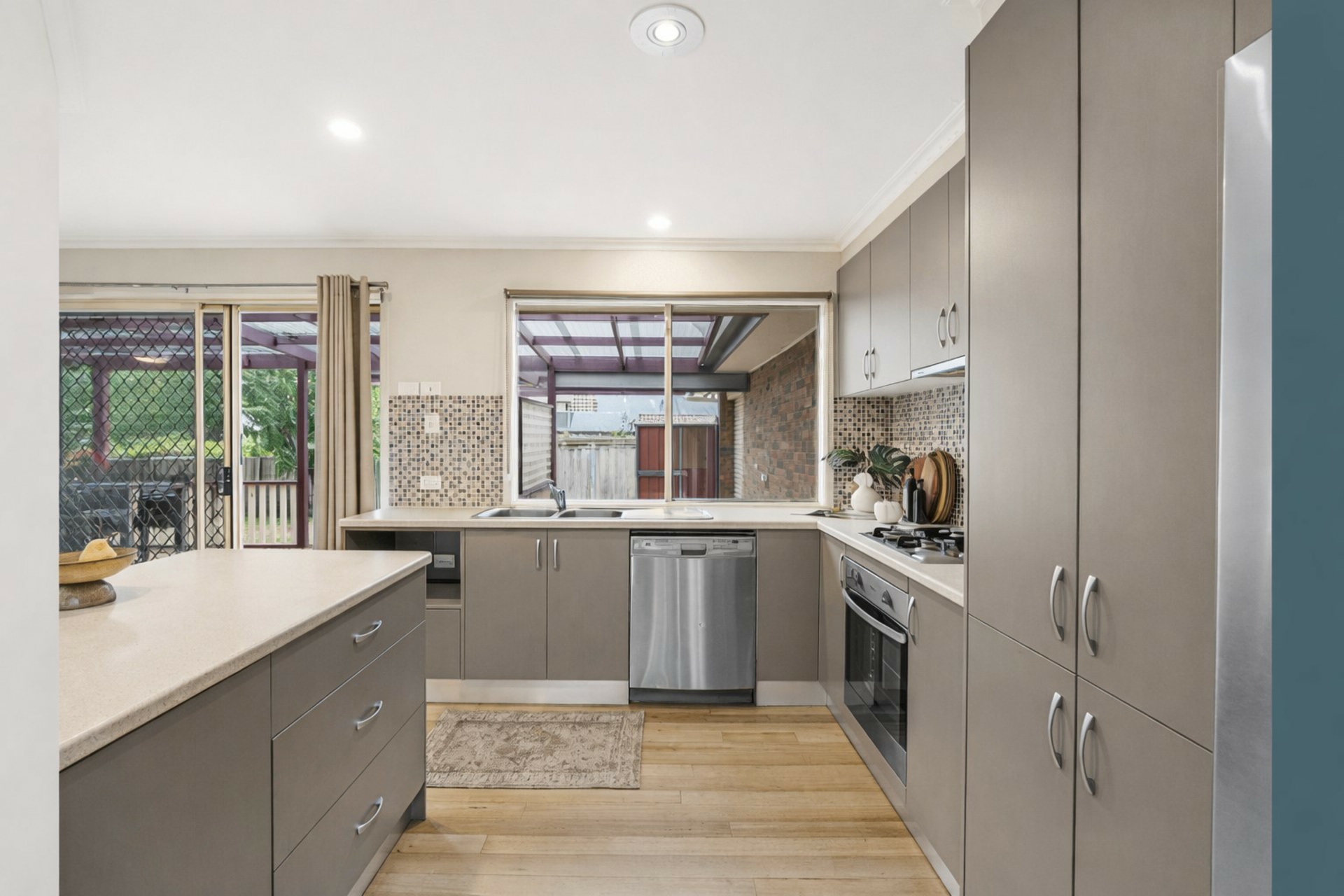 • Well-appointed kitchen with island bench and gas cooking