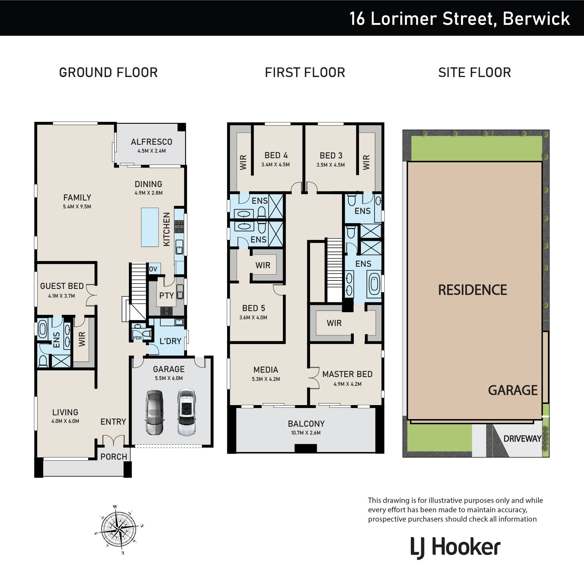 - 5 bedrooms, 5 bathrooms, multiple livings, and a double lock-up garage