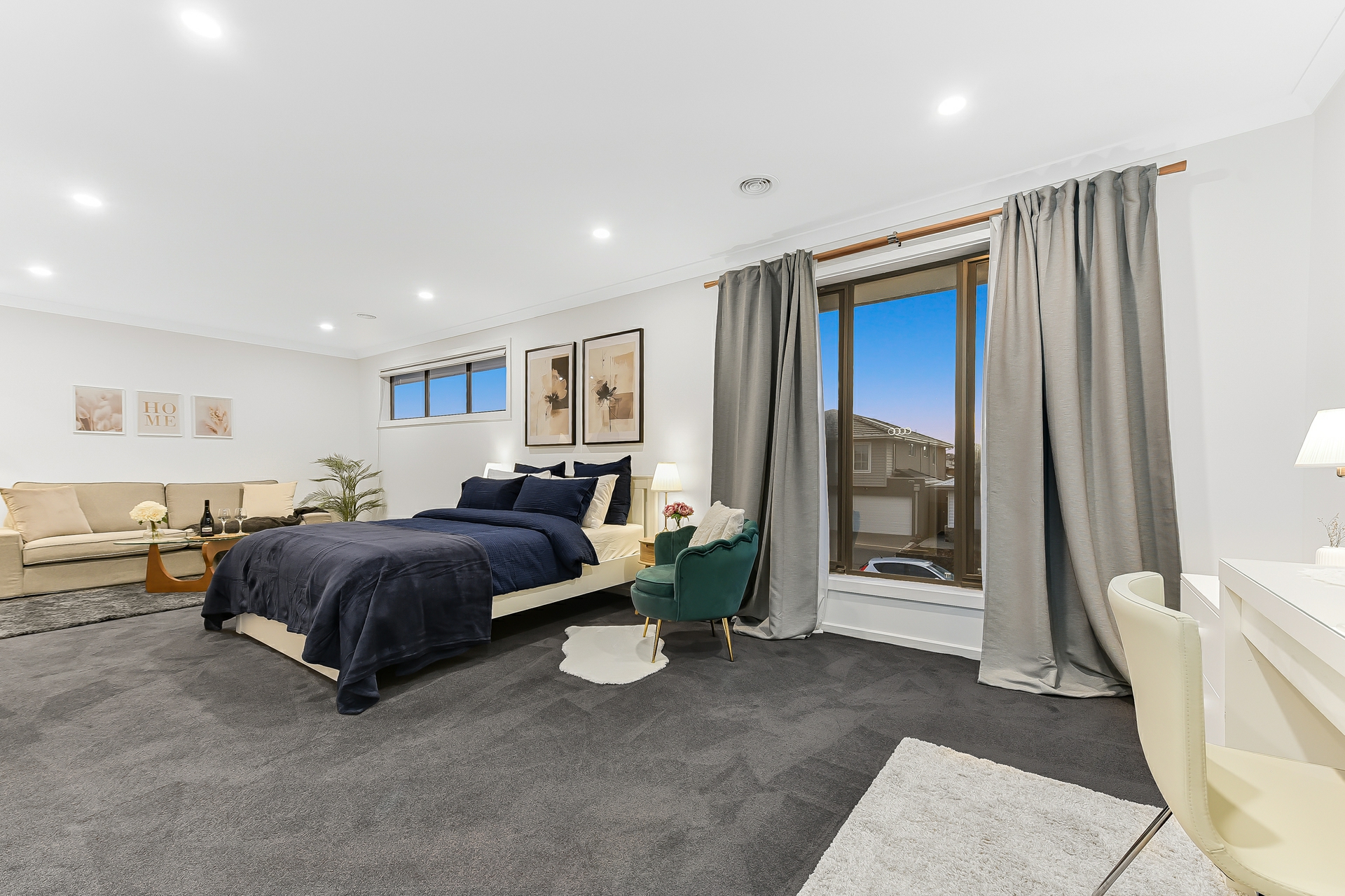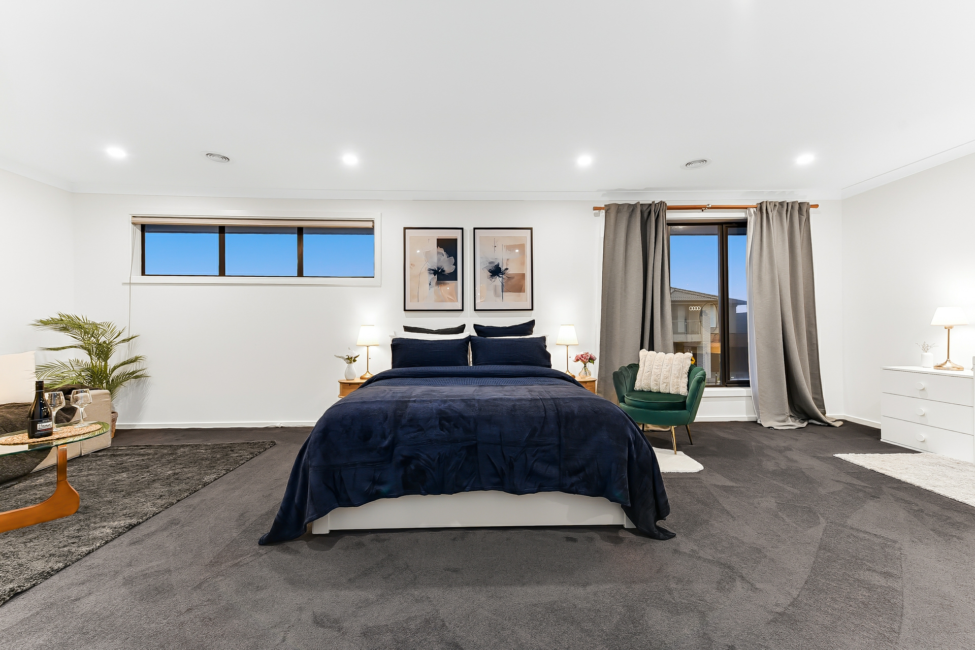 The expansive master suite is a true sanctuary, offering a luxurious, hotel-inspired feel complete with a large walk-in robe and a private ensuite boasting a spacious rainfall shower.
