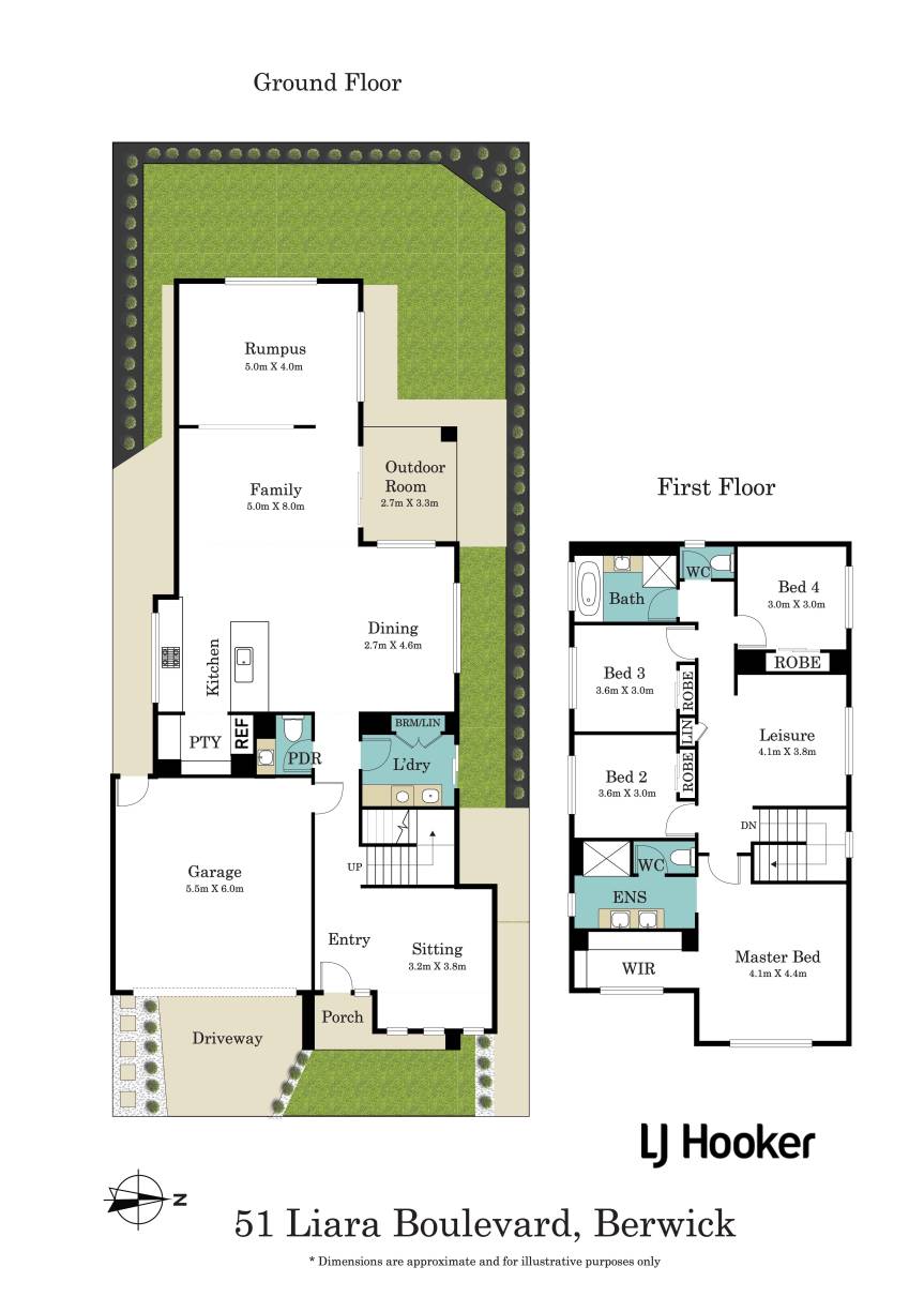 The ground floor also features a well-placed powder room, a laundry with external access, and internal access to a double garage, ensuring convenience in daily life.