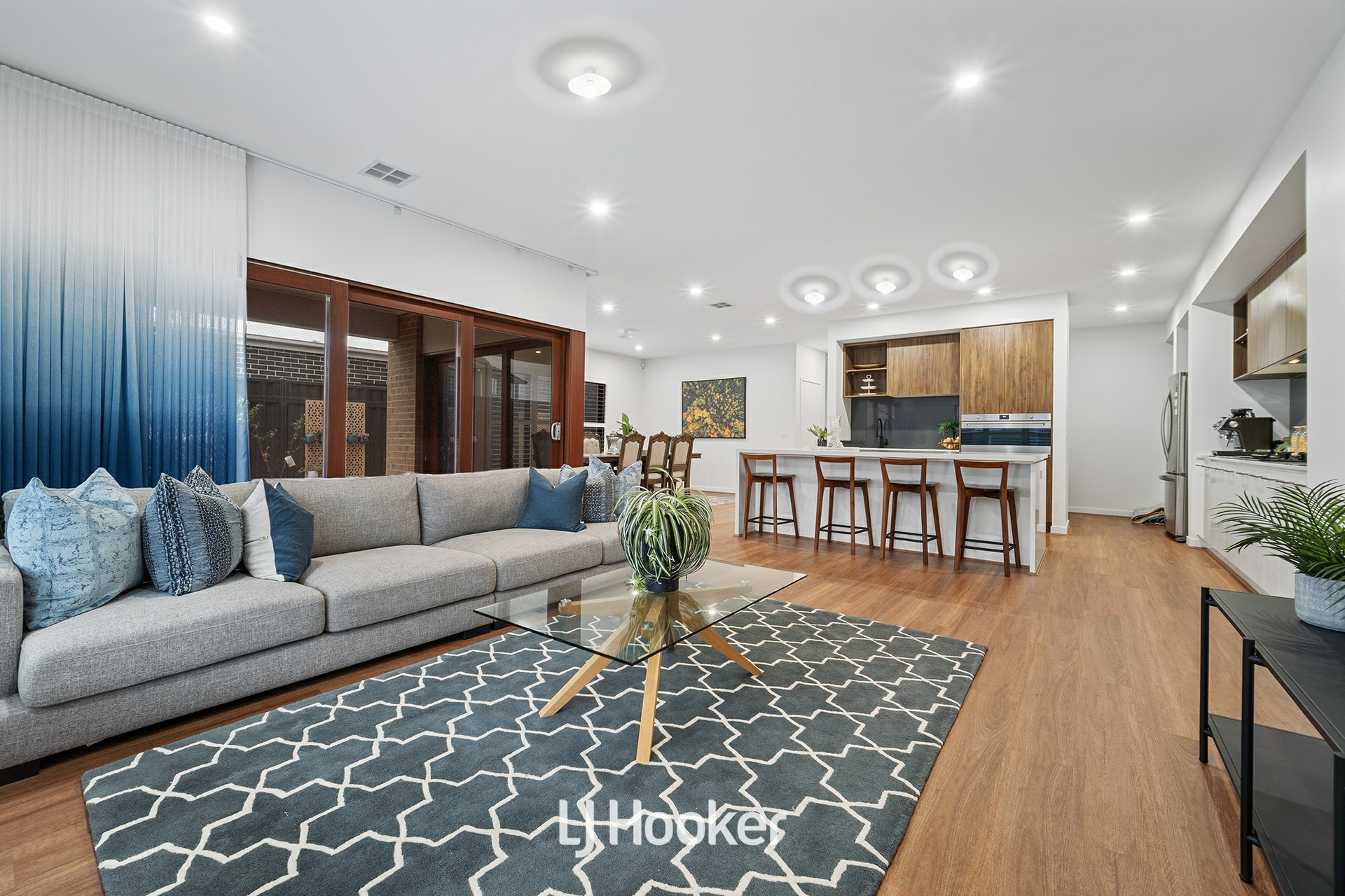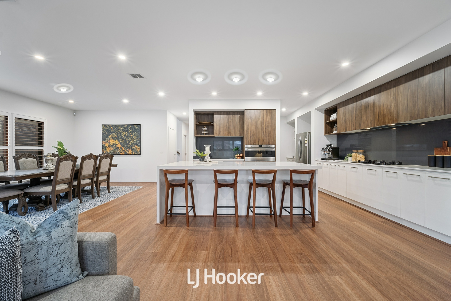 A sliding door opens to the alfresco area, creating the perfect indoor-outdoor flow for entertaining or enjoying quiet family evenings. The ground floor is completed by a convenient laundry, powder room, and internal access to the double garage.