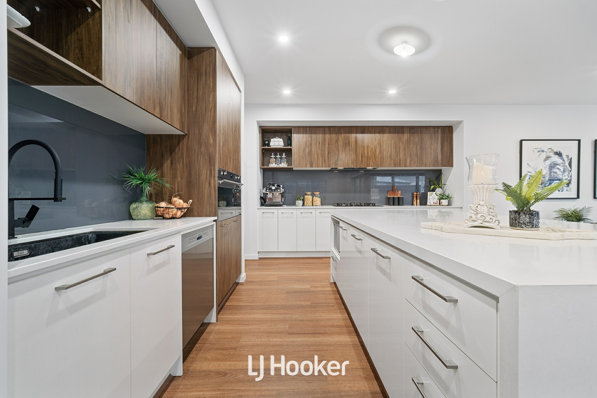-Modern kitchen with butler's pantry and walk-in pantry