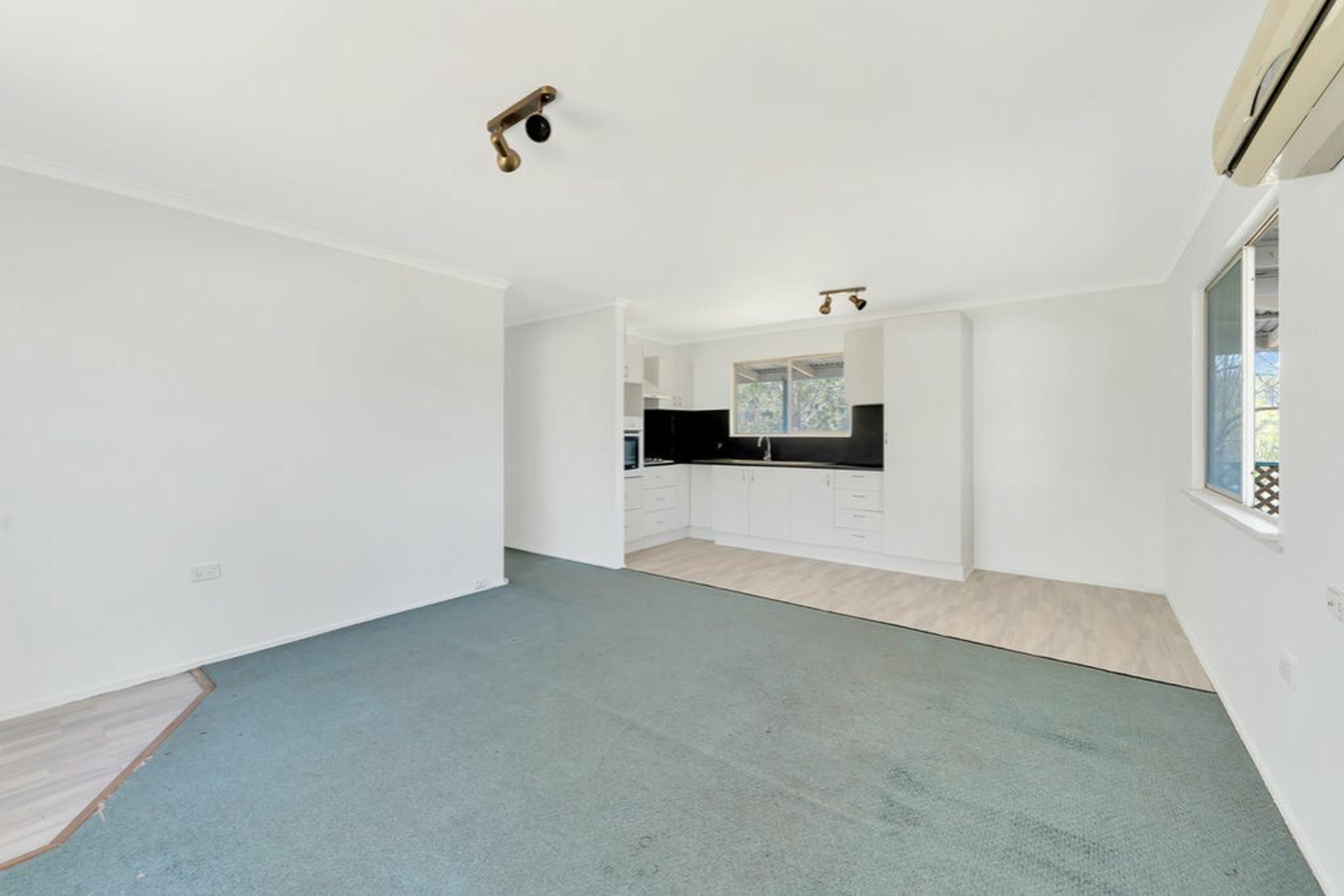 Open plan kitchen, dining and lounge room