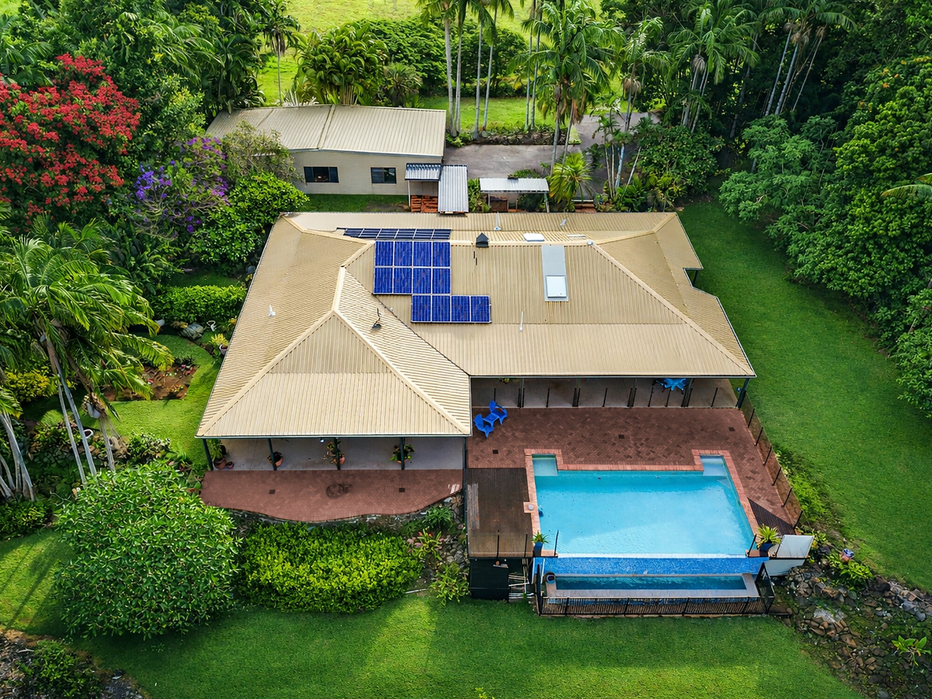 Outdoors, the property continues to impress with a saltwater in-ground pool and expansive acreage providing complete privacy and endless possibilities.