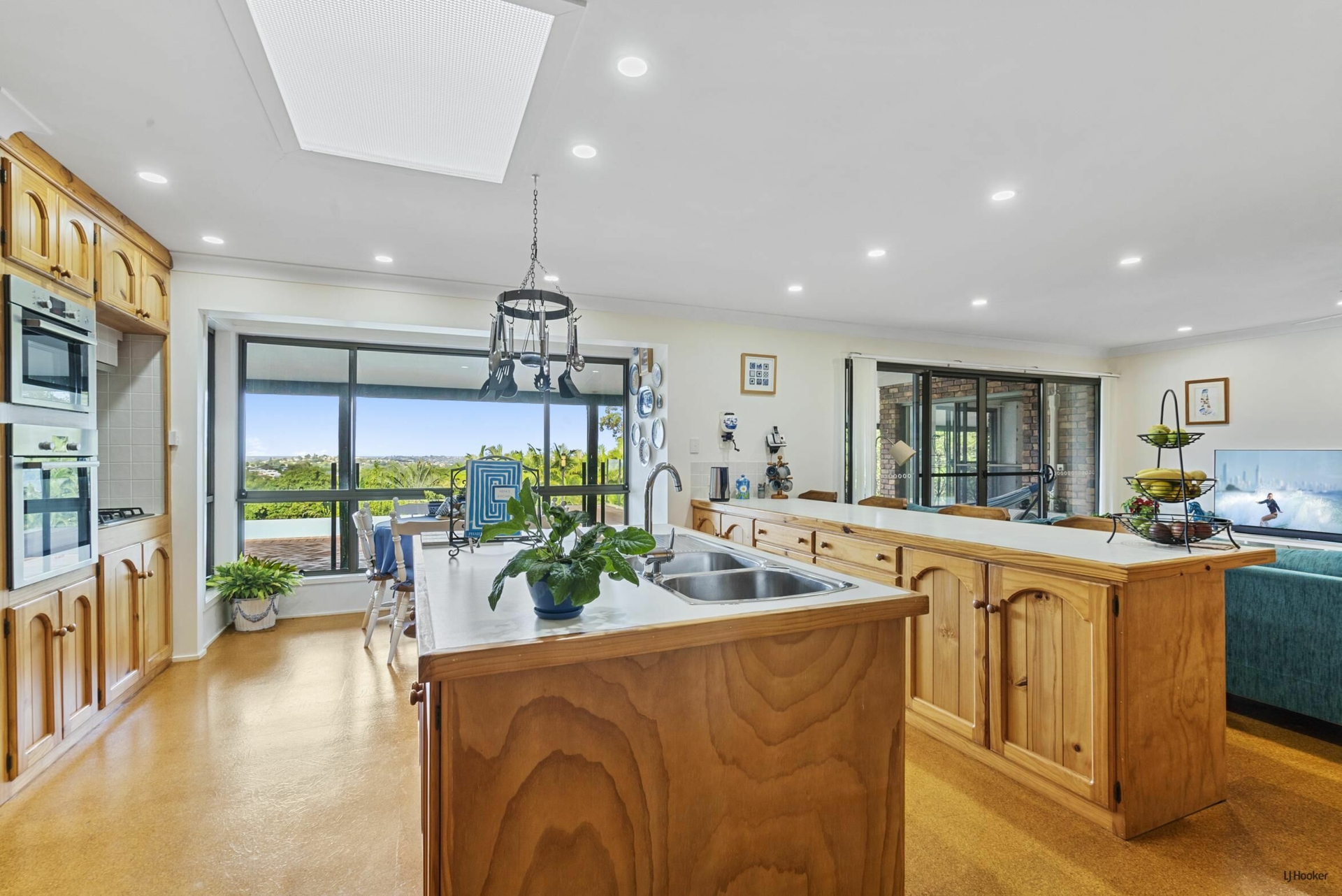 Spacious timber kitchen with gas cooktop