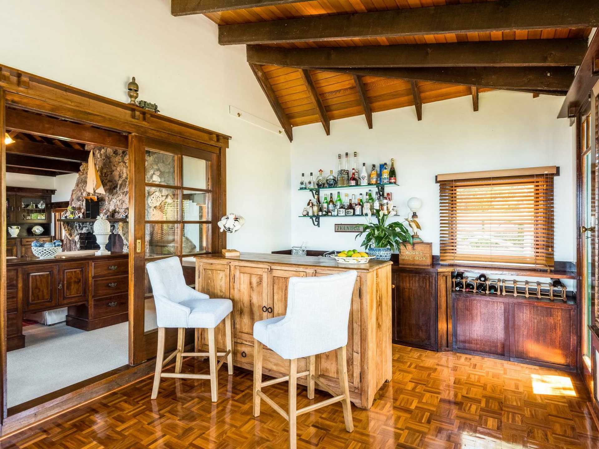 - Character and charm; beautiful stonework, cathedral ceilings, parquet floors