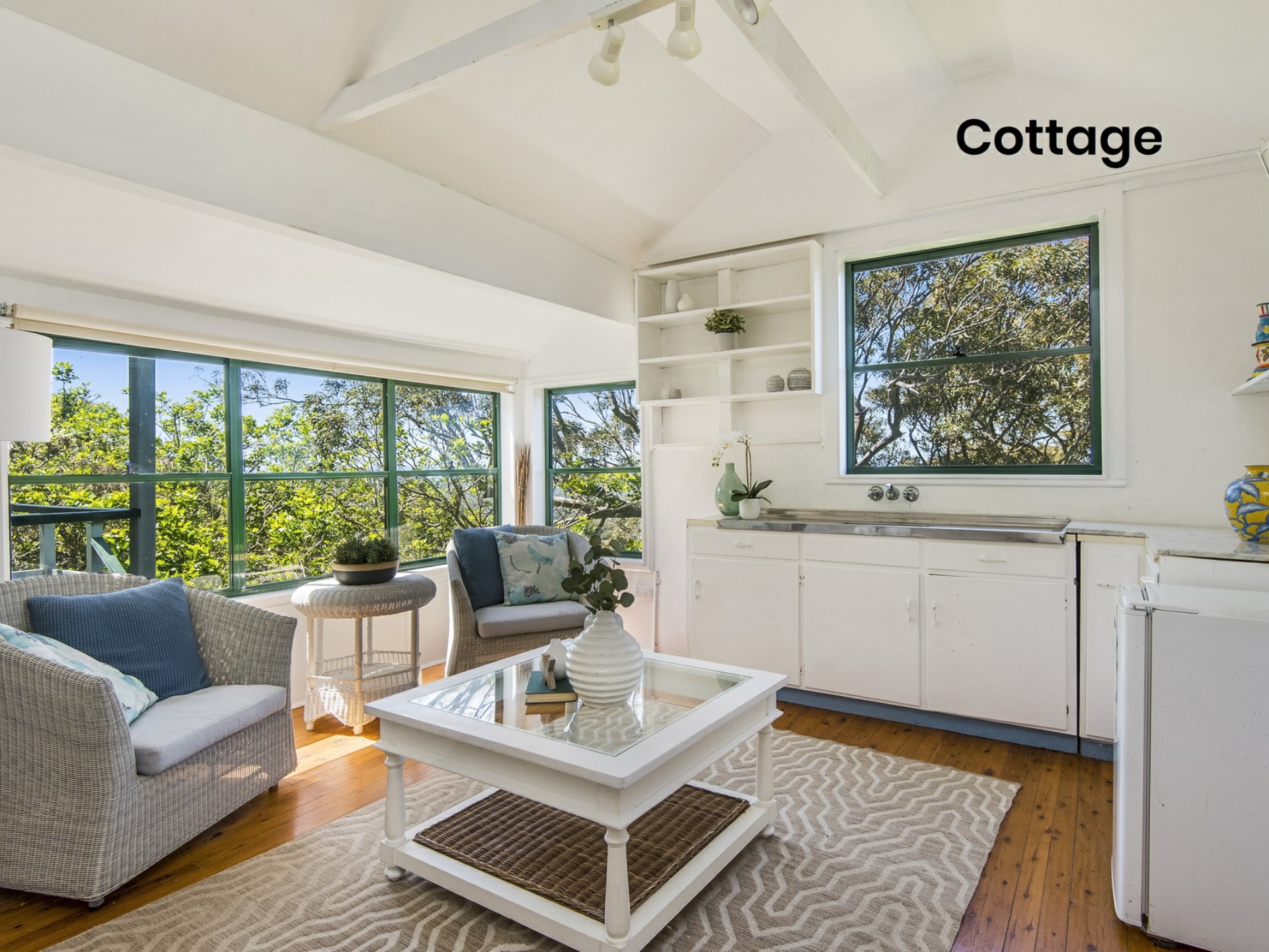 Originally built as a two-bedroom weekender, the cottage has been sympathetically updated and enlarged to include a master ensuite, modern gas kitchen with timber benchtops, elegant family bathroom plus sun drenched terraces and decks. The home spans just one of the two titles, providing a superb opportunity for the new owners to sell the adjacent title, or build an additional dwelling in a world-class position (STCA). The parcels can be purchased in one line or separately; each will to be auctioned on Tuesday, November 19 at 6:00pm.