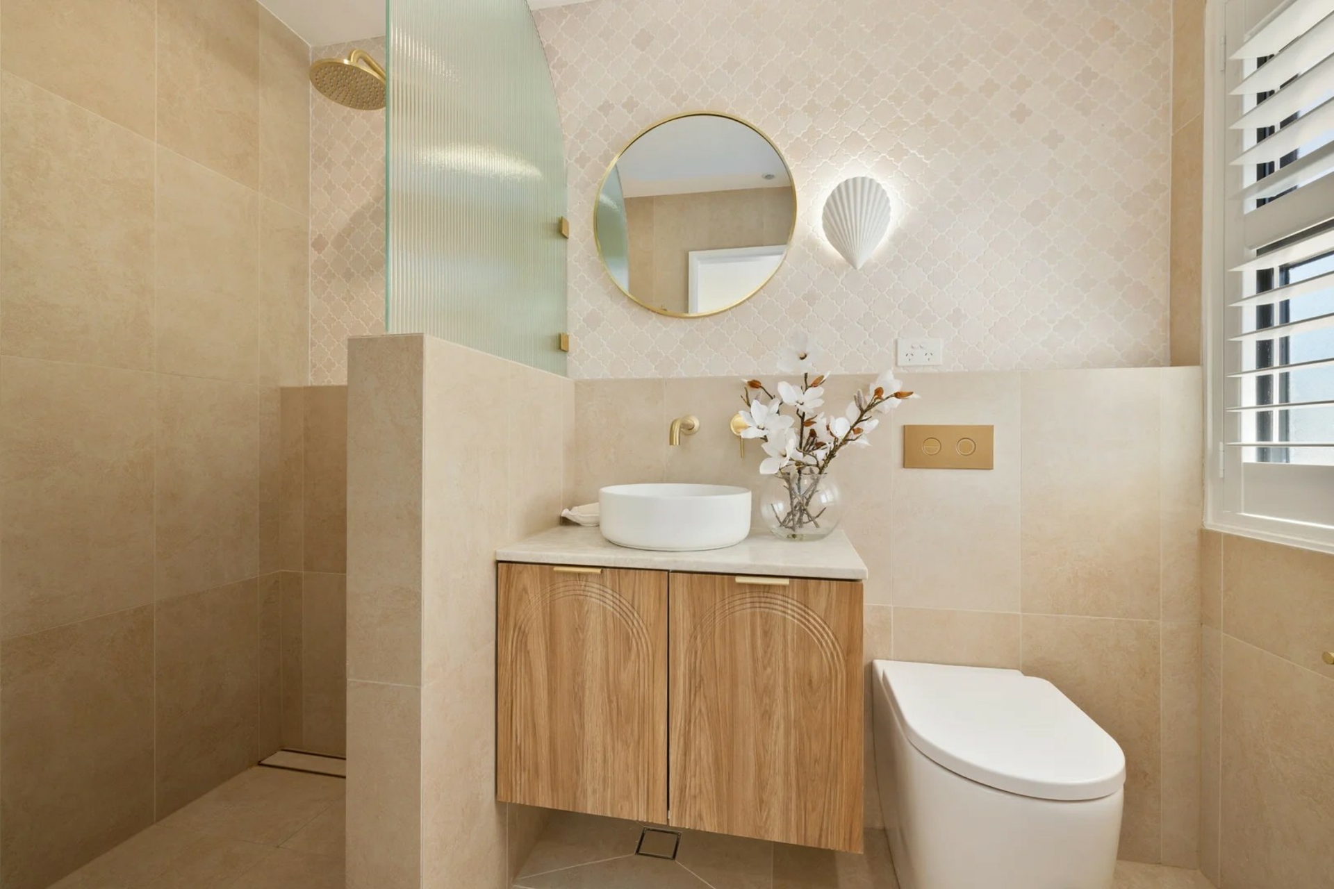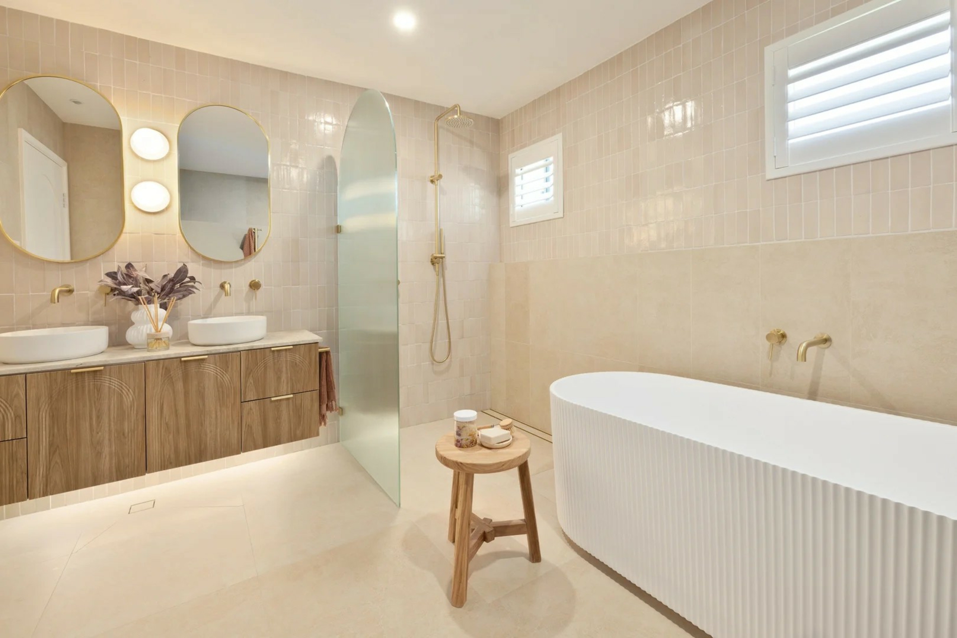 Spa-style bathrooms with fluted glass, Moroccan tiles & freestanding tub