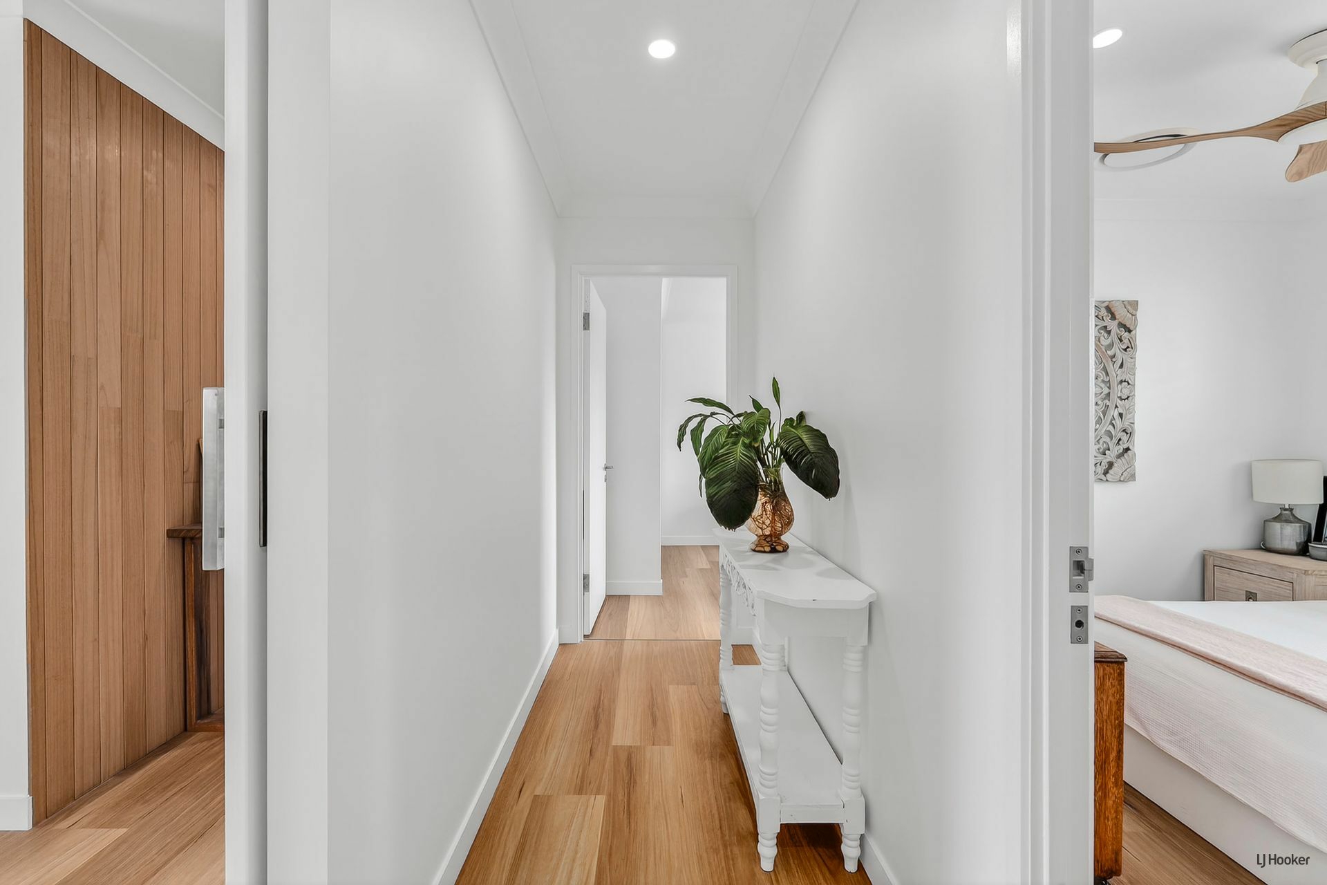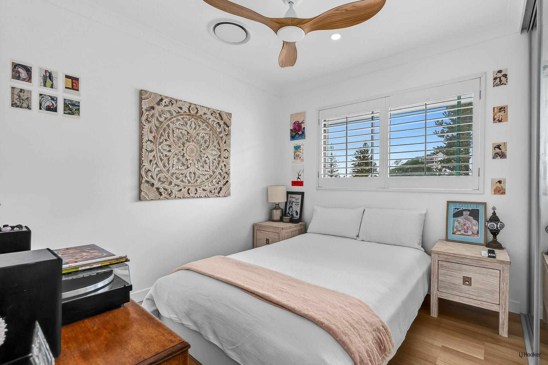 Outdoor living is elevated across two balconies, with an oversized Juliet balcony capturing palm-framed ocean views and a rear balcony offering a private alfresco retreat cooled by cross-flow sea breezes.