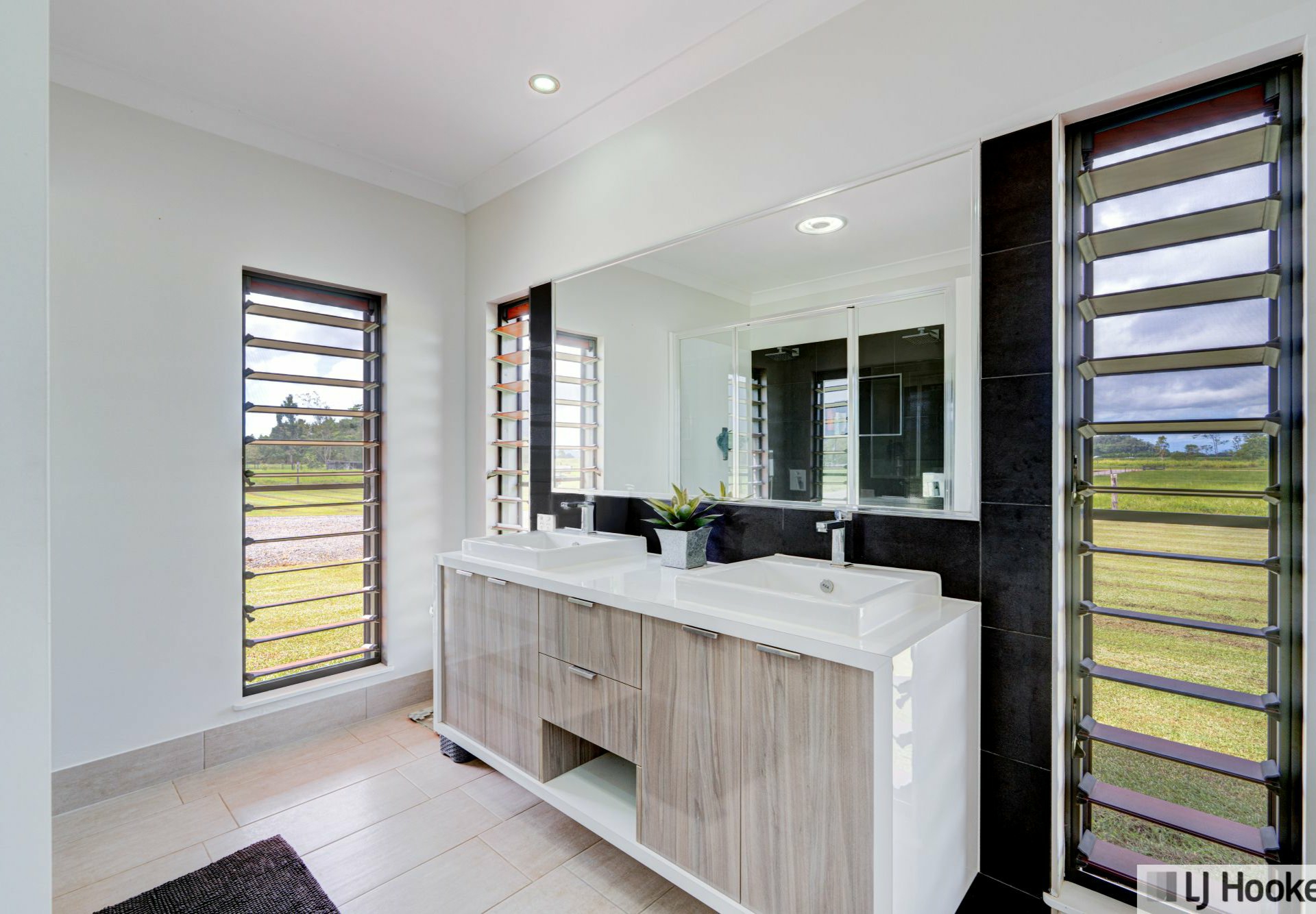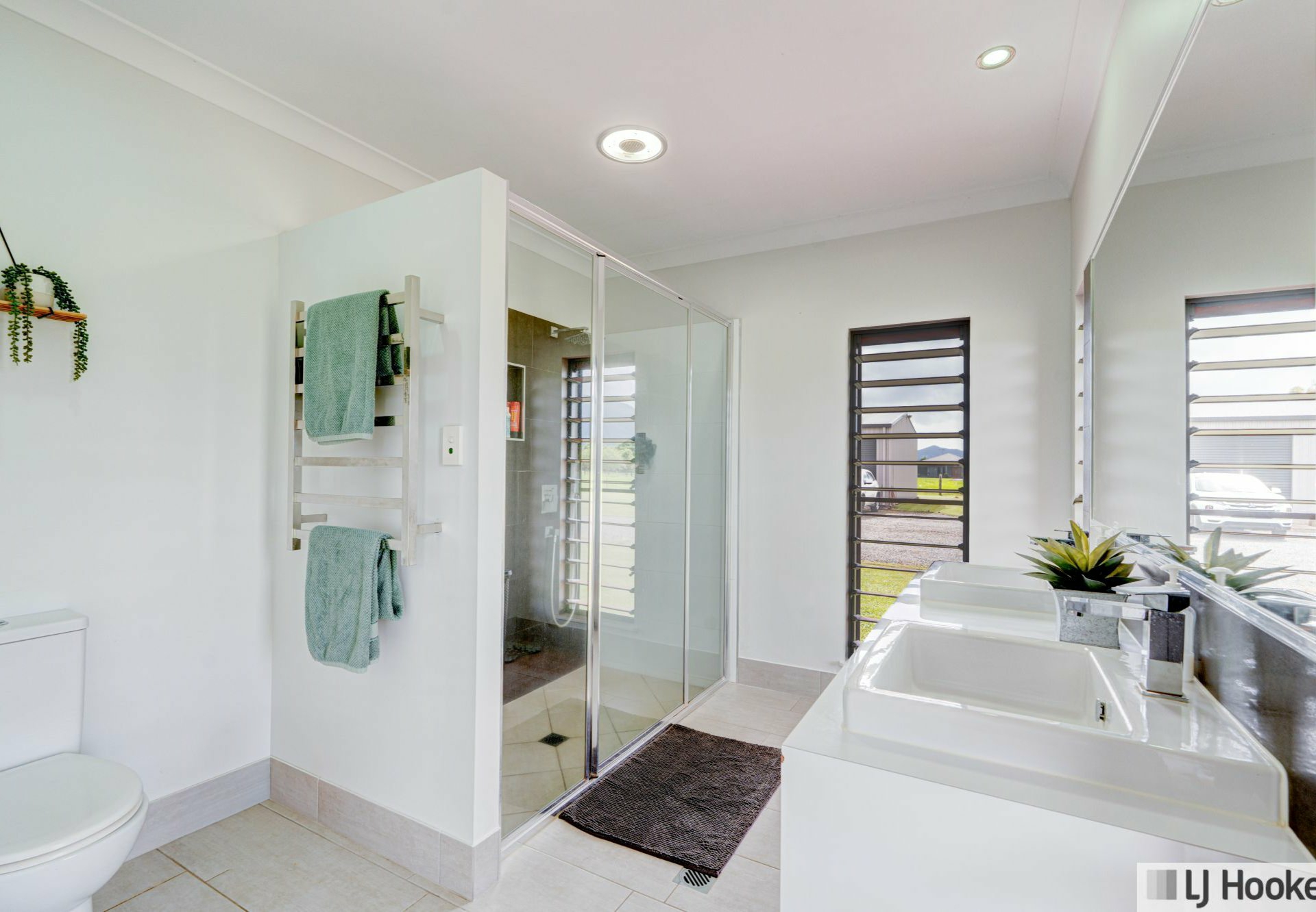 The home features four generously sized bedrooms, all with built-in wardrobes. The master suite is a true retreat, boasting a spacious walk-in wardrobe and a luxurious ensuite with double basins and heated towel rails. The main bathroom is equally well-appointed, offering both a bath and shower, plus a separate toilet for added convenience.