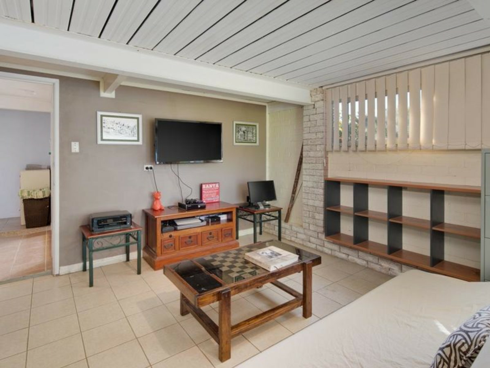 The lovely timber flooring in the hallway then leads to a door at the rear providing access to a huge undercover deck. This fantastic deck includes a large wall mounted TV which the owner is kindly leaving for the new owner, loads of space for your choice of furniture, room for the barbecue and all of this while you over look the picturesque garden and tree lined back yard.