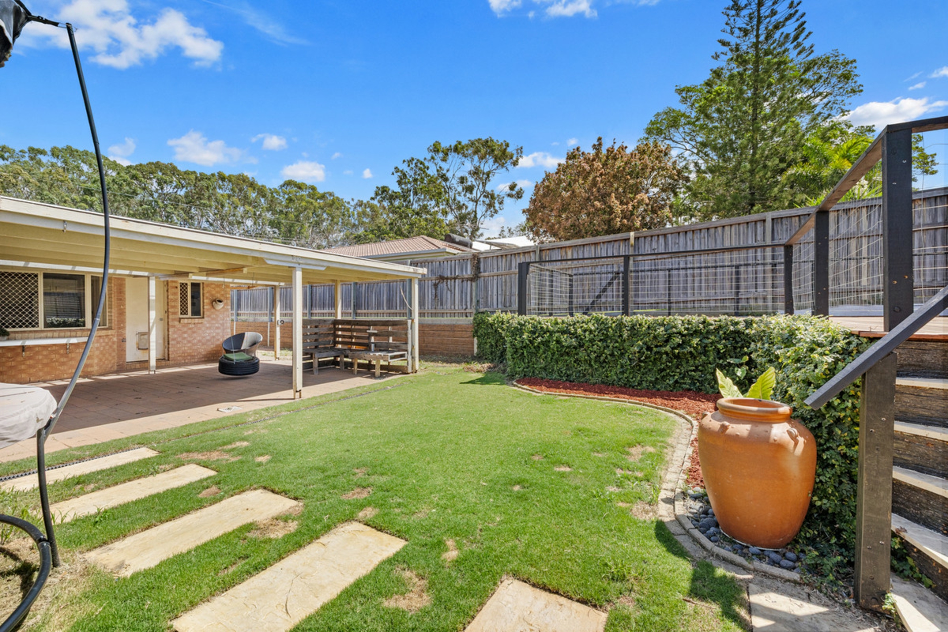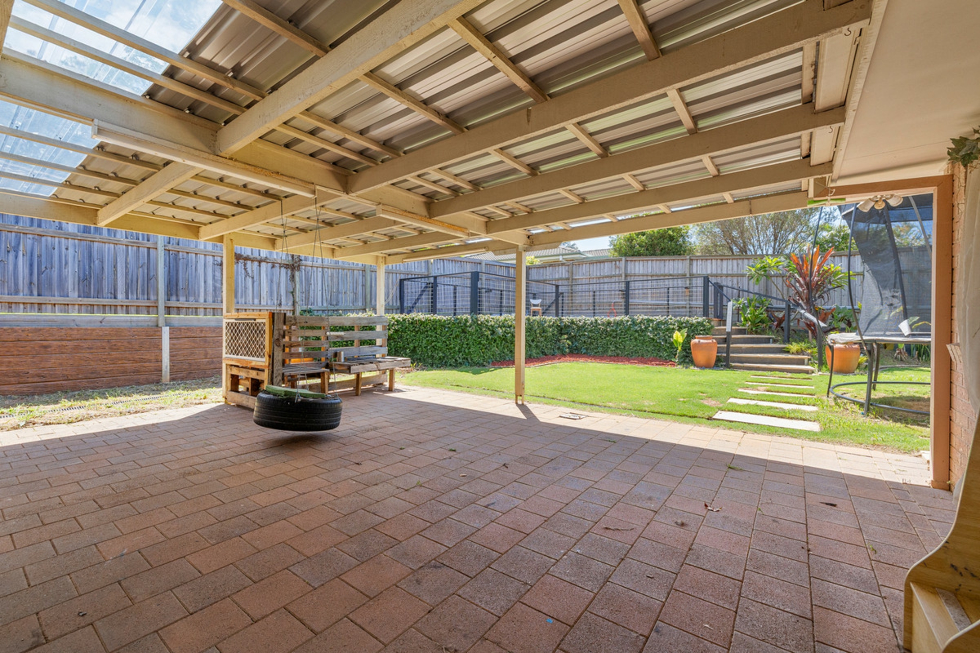• Huge covered entertaining area overlooking rear yard for kids & pets to play