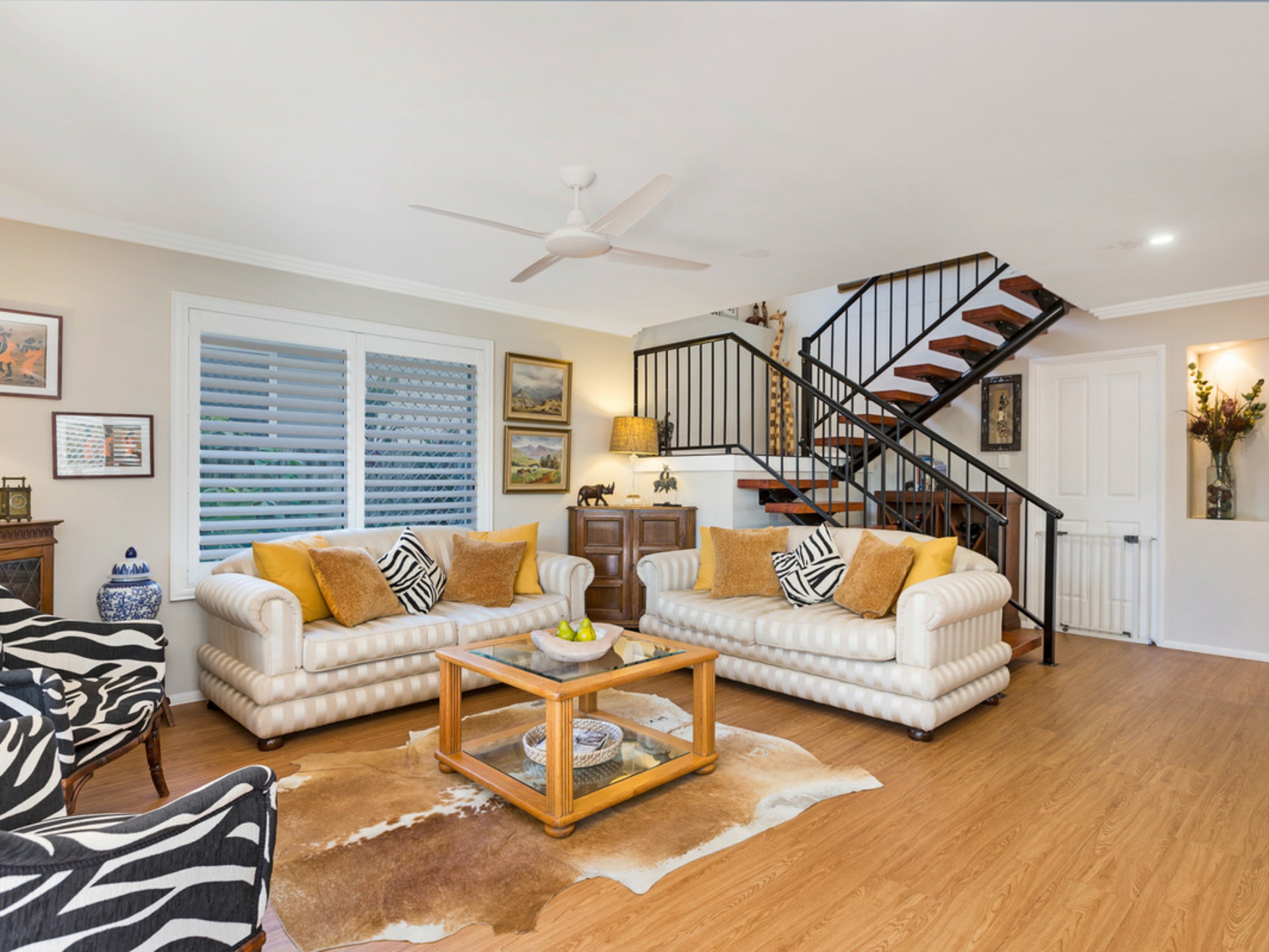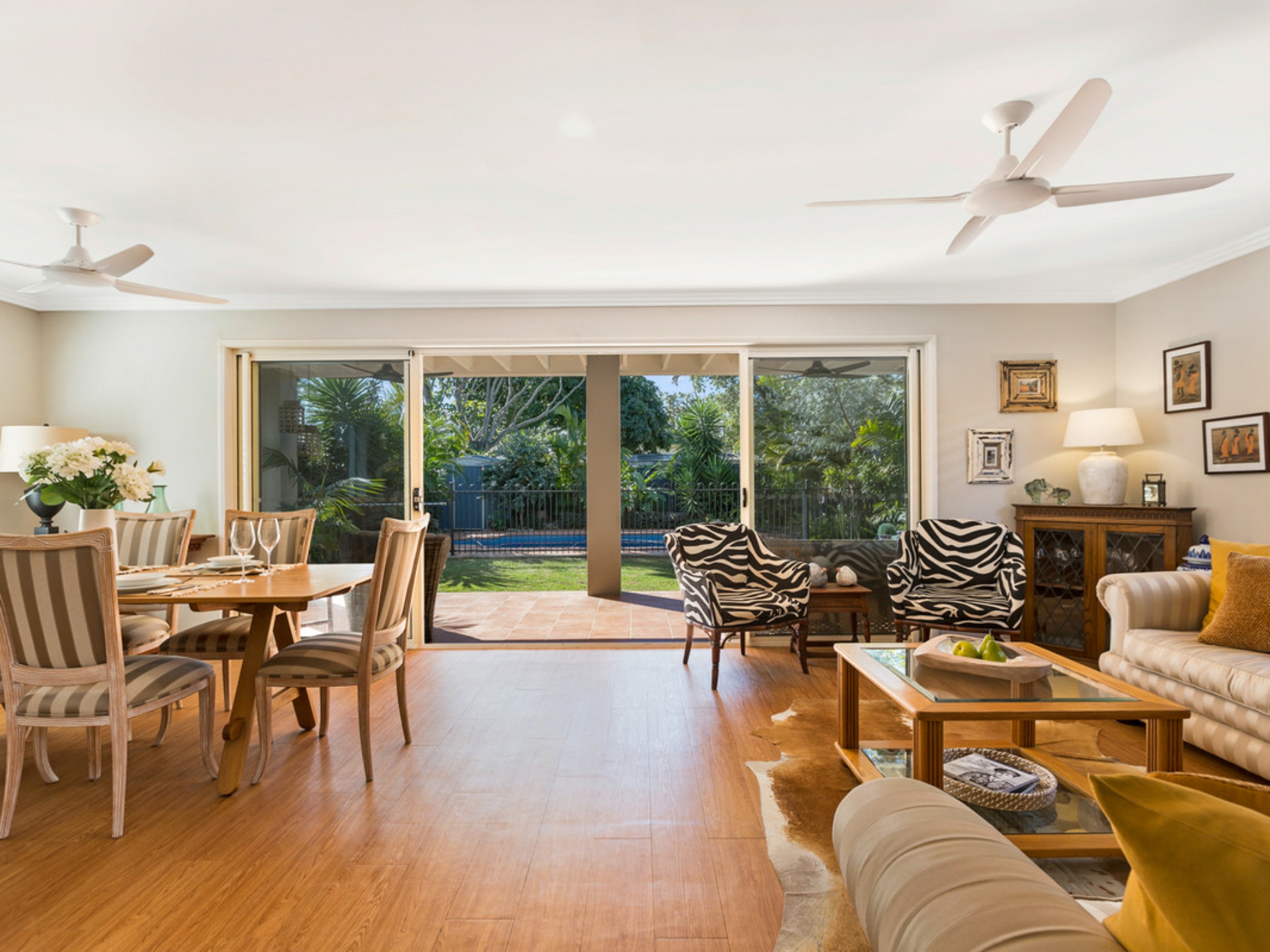 Spacious casually elegant living rooms on both levels with glass sliders leading to the delightful outdoor living areas.