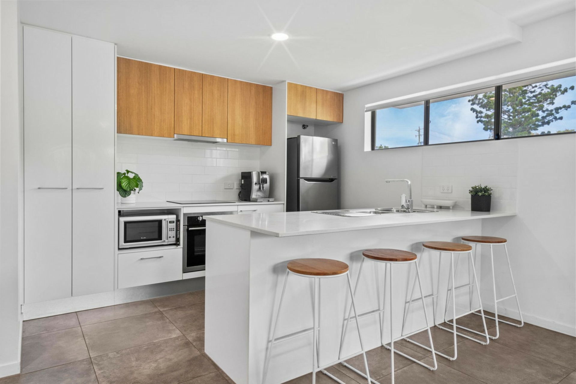 •Sleek stone benchtops.