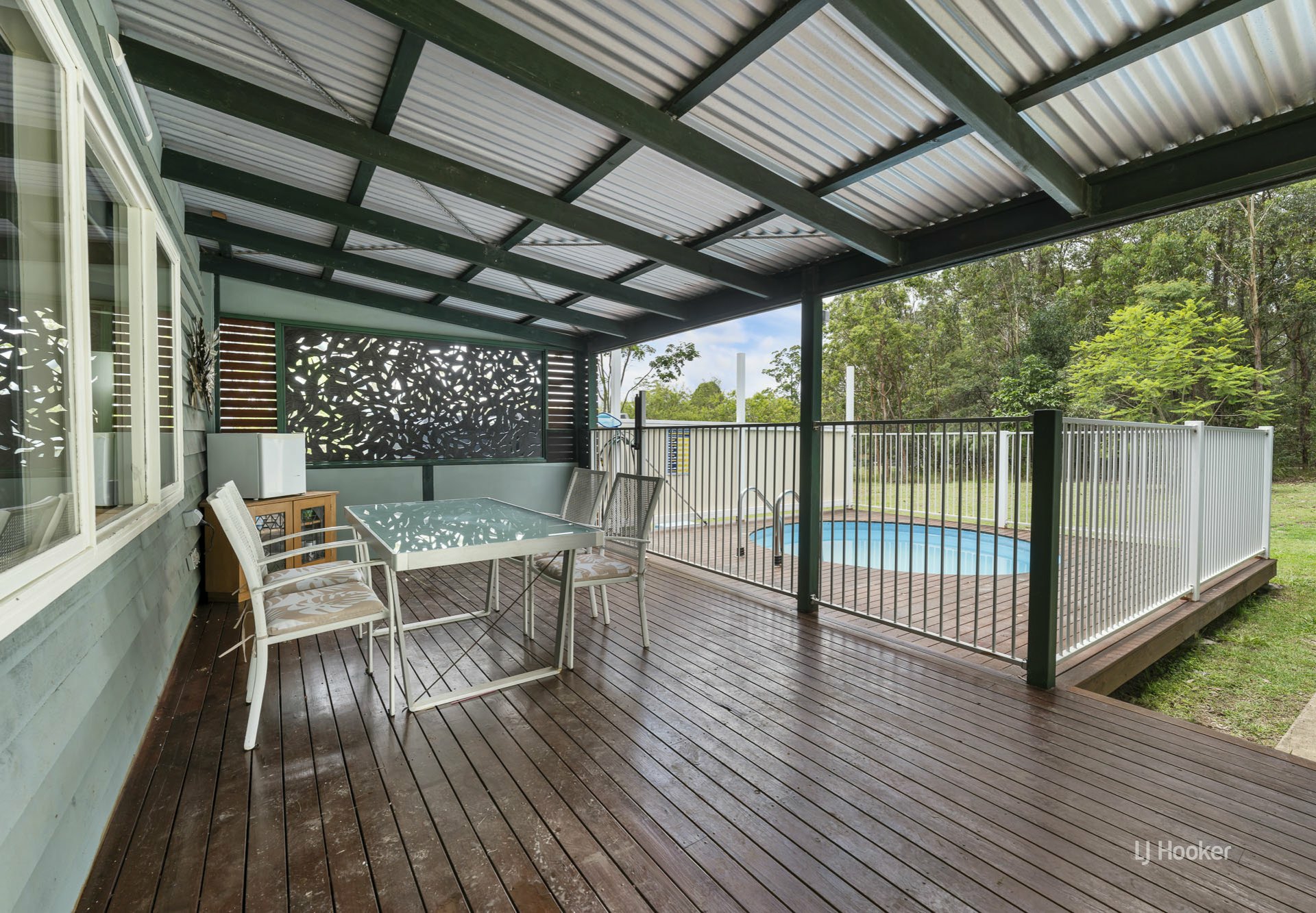 Step outside to a lovely alfresco entertaining area overlooking the plunge pool, an ideal space to relax and enjoy the peaceful surrounds.