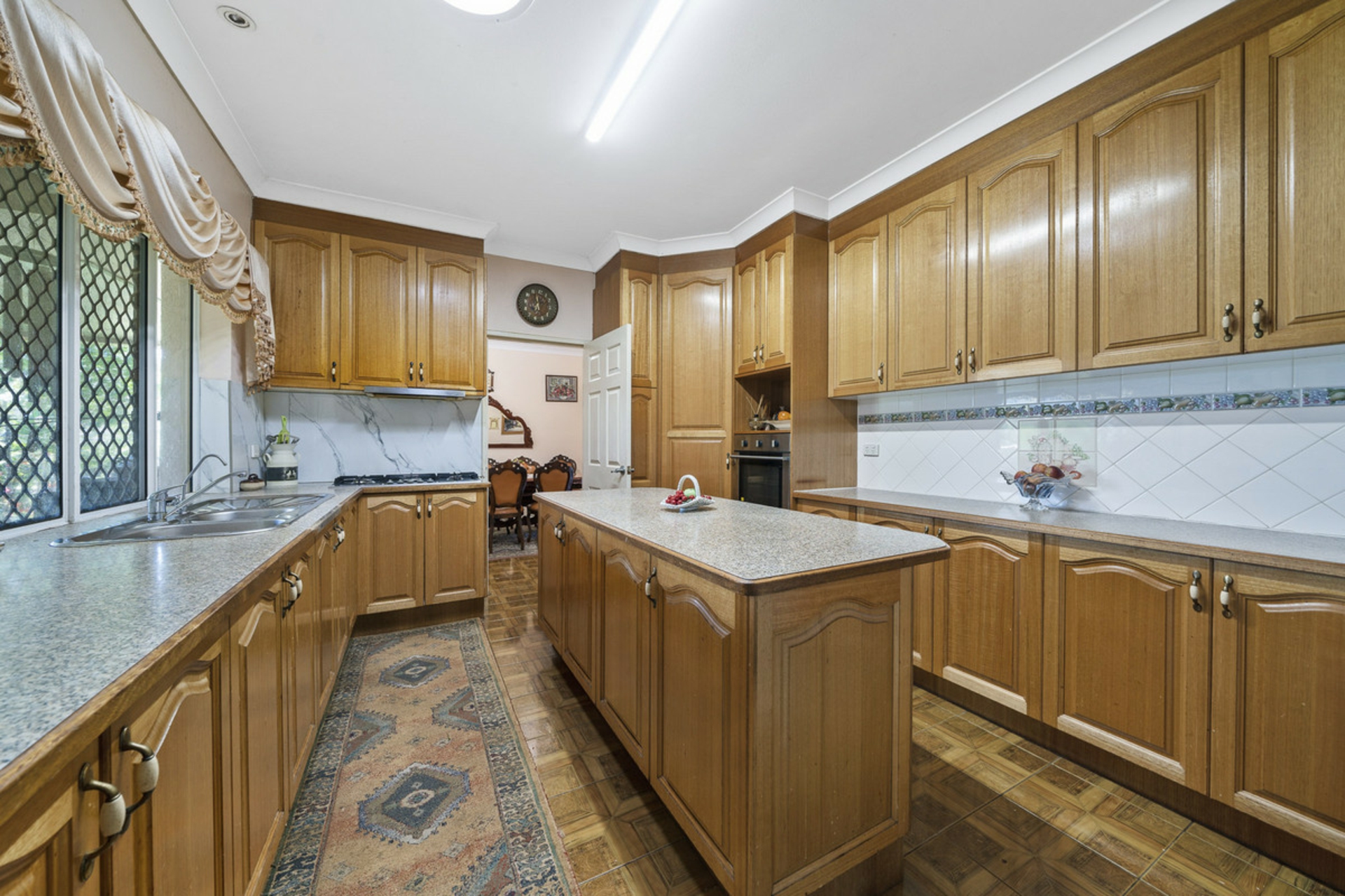 •Timber kitchen with extensive oak cabinetry, wall oven & electric cooktop