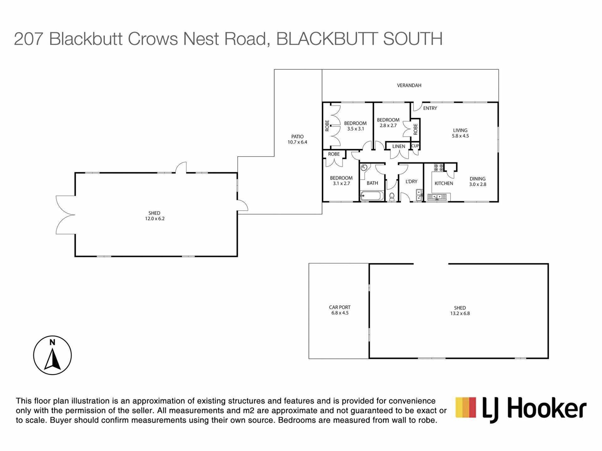 Shed 2: 13.2m x 6.8m plus 6.8m x 4.5m carport – ideal for additional vehicles, equipment, or a large horse float