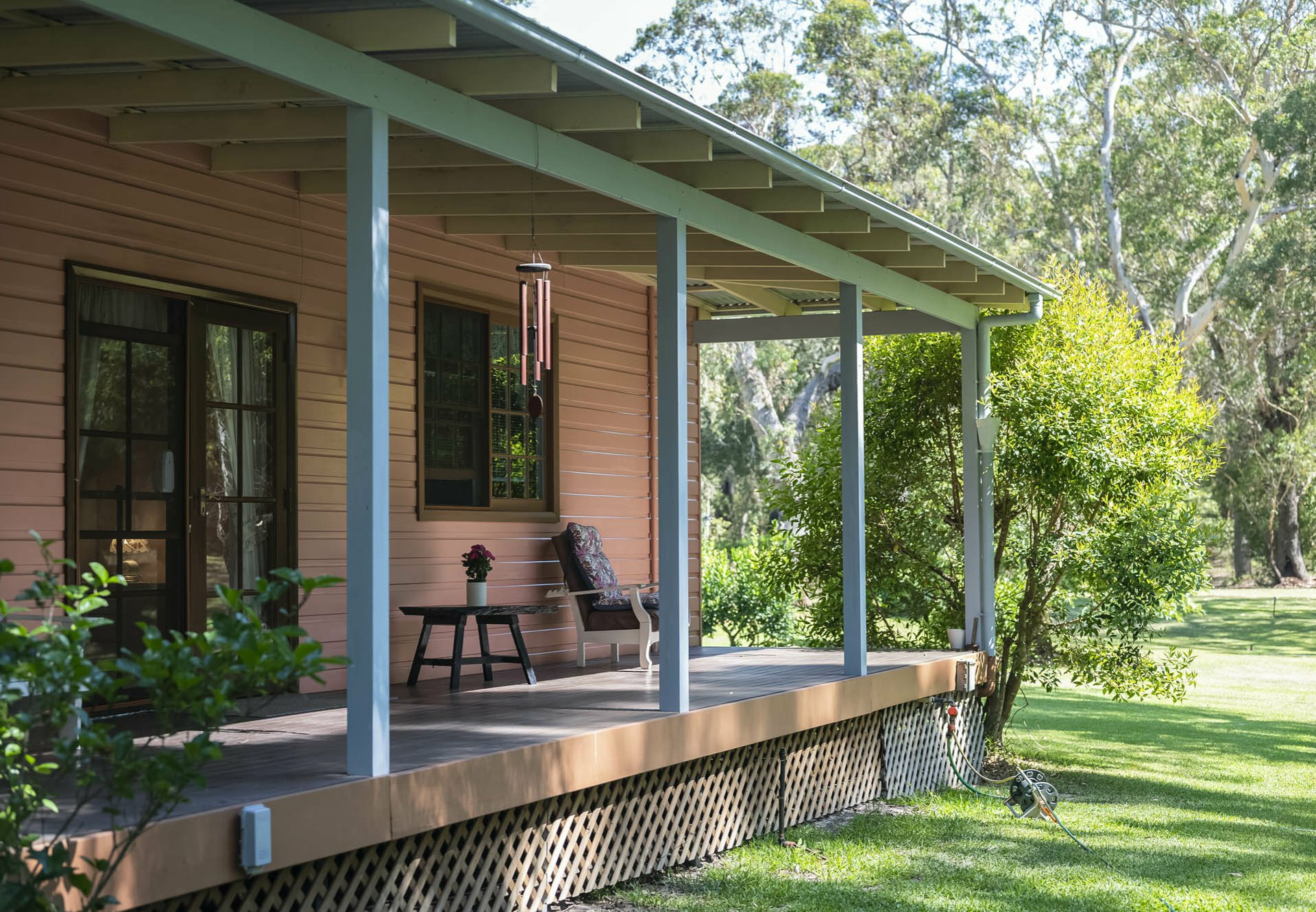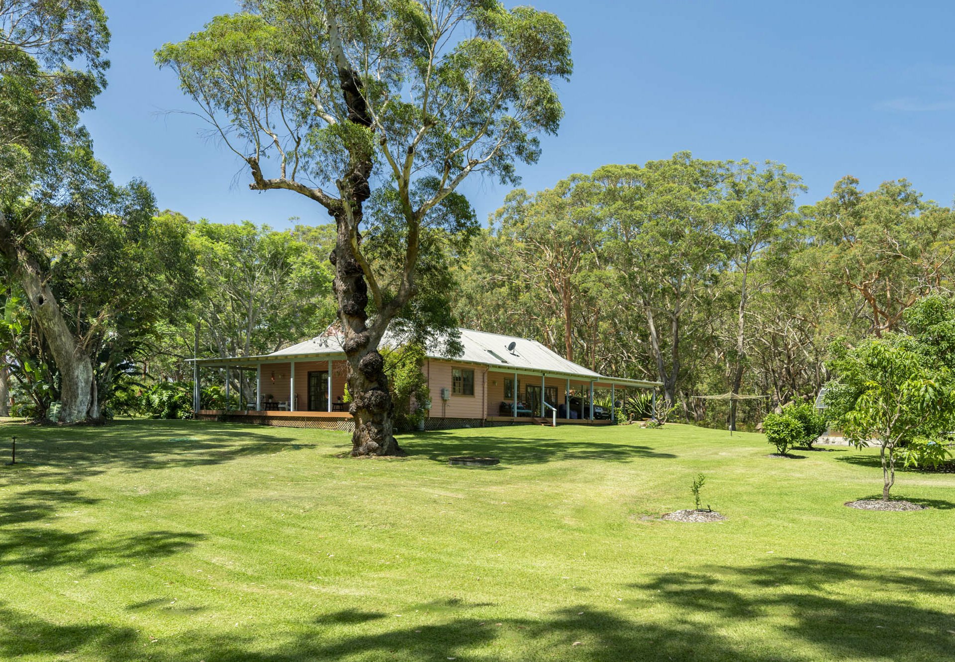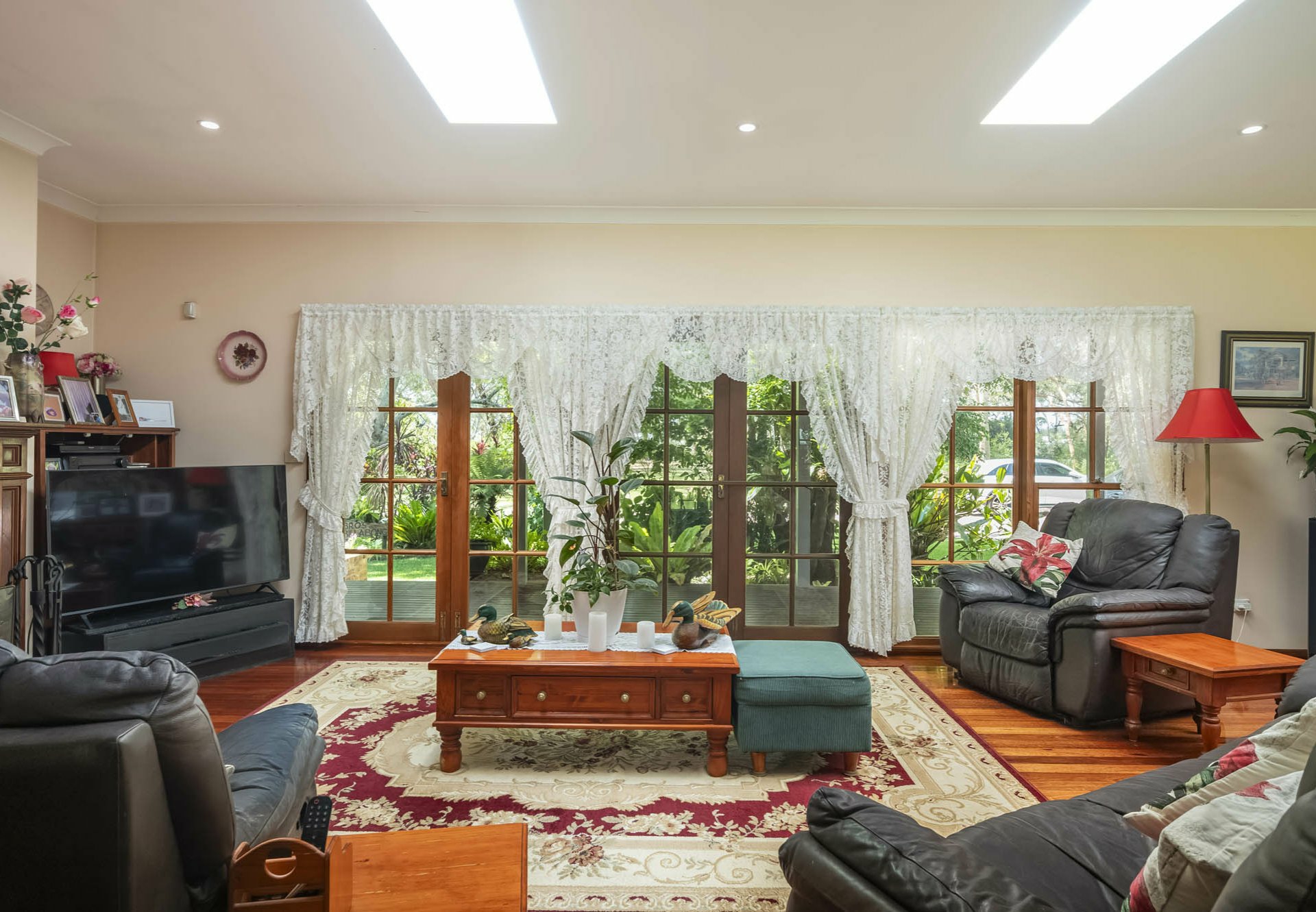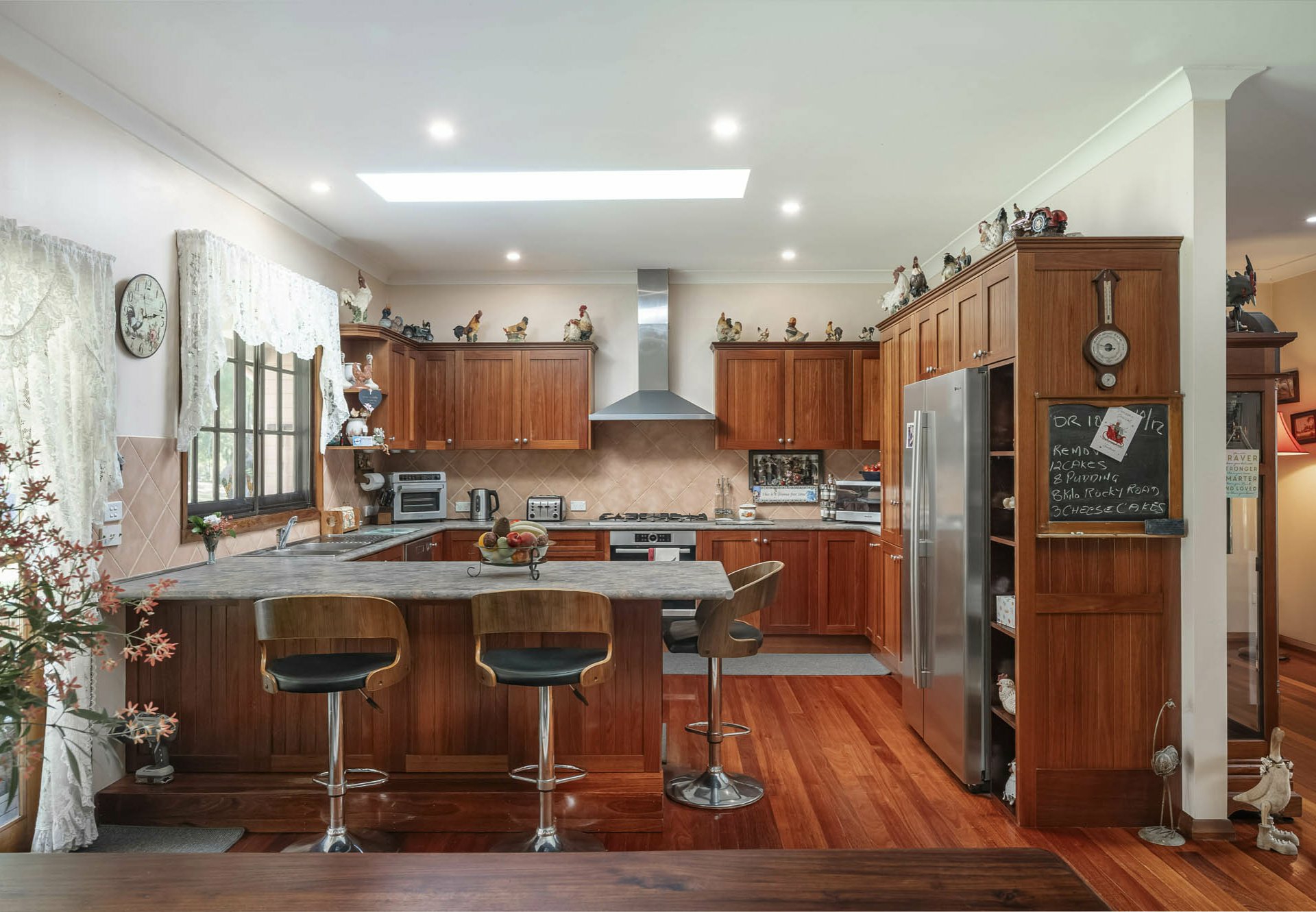 A rare blend of coastal convenience and country calm, this immaculate four bedroom homestead sits privately on approx. 3.9 acres of park-like grounds framed by mature trees and birdlife. A classic wrap-around verandah, beautiful timber floorboards, and timber French doors set the tone for relaxed indoor–outdoor living.