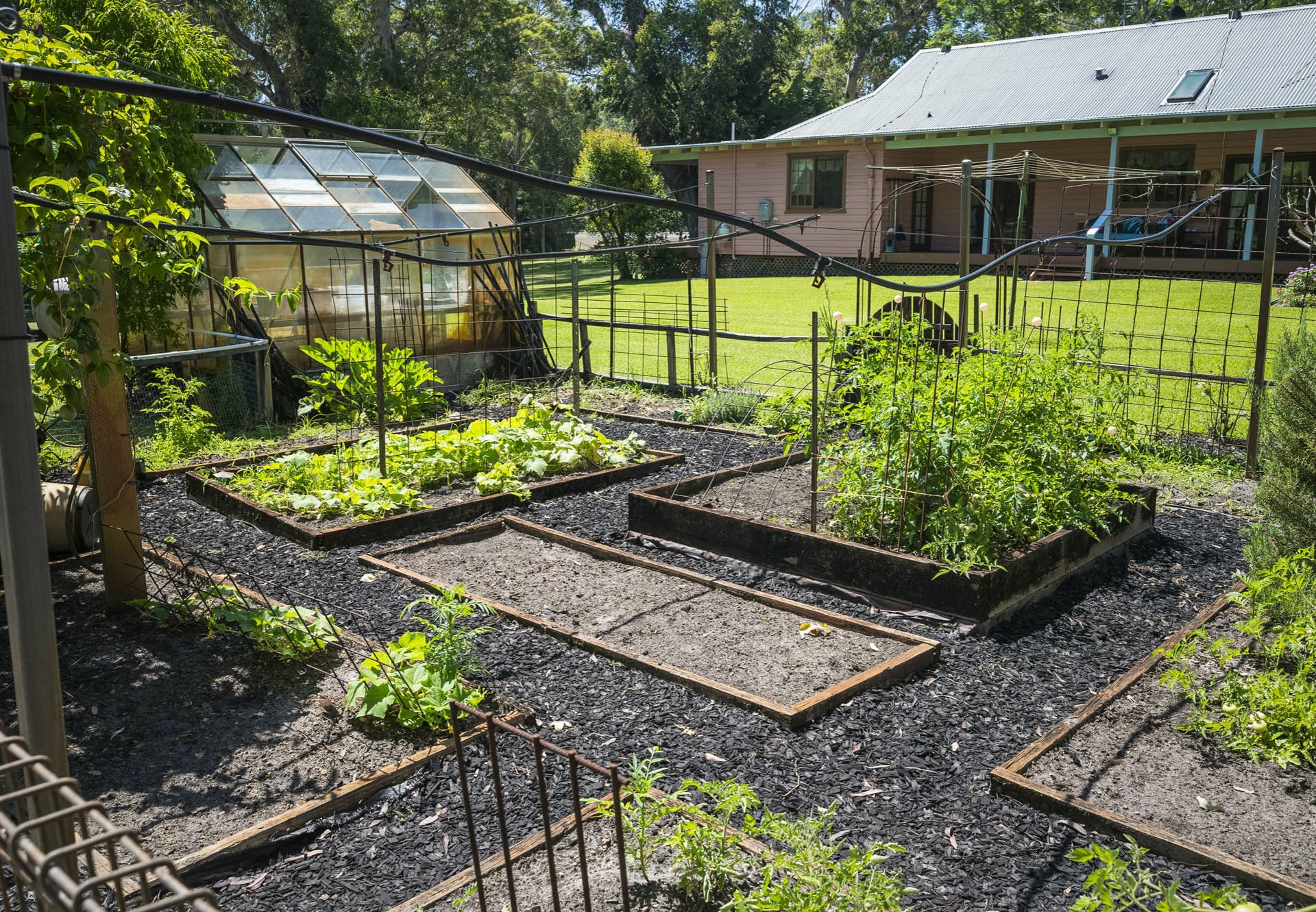Outside, the electric front gate opens to sweeping lawns, thriving vegetable gardens a greenhouse, and serious shedding for all the toys.