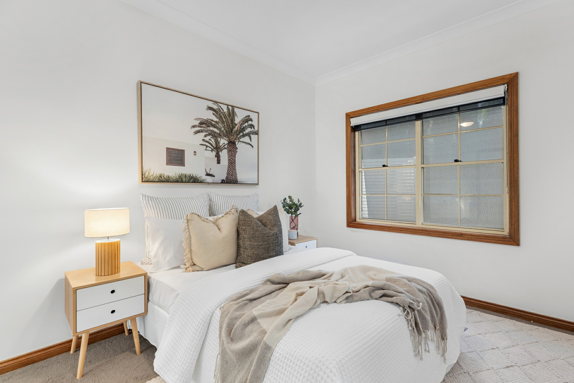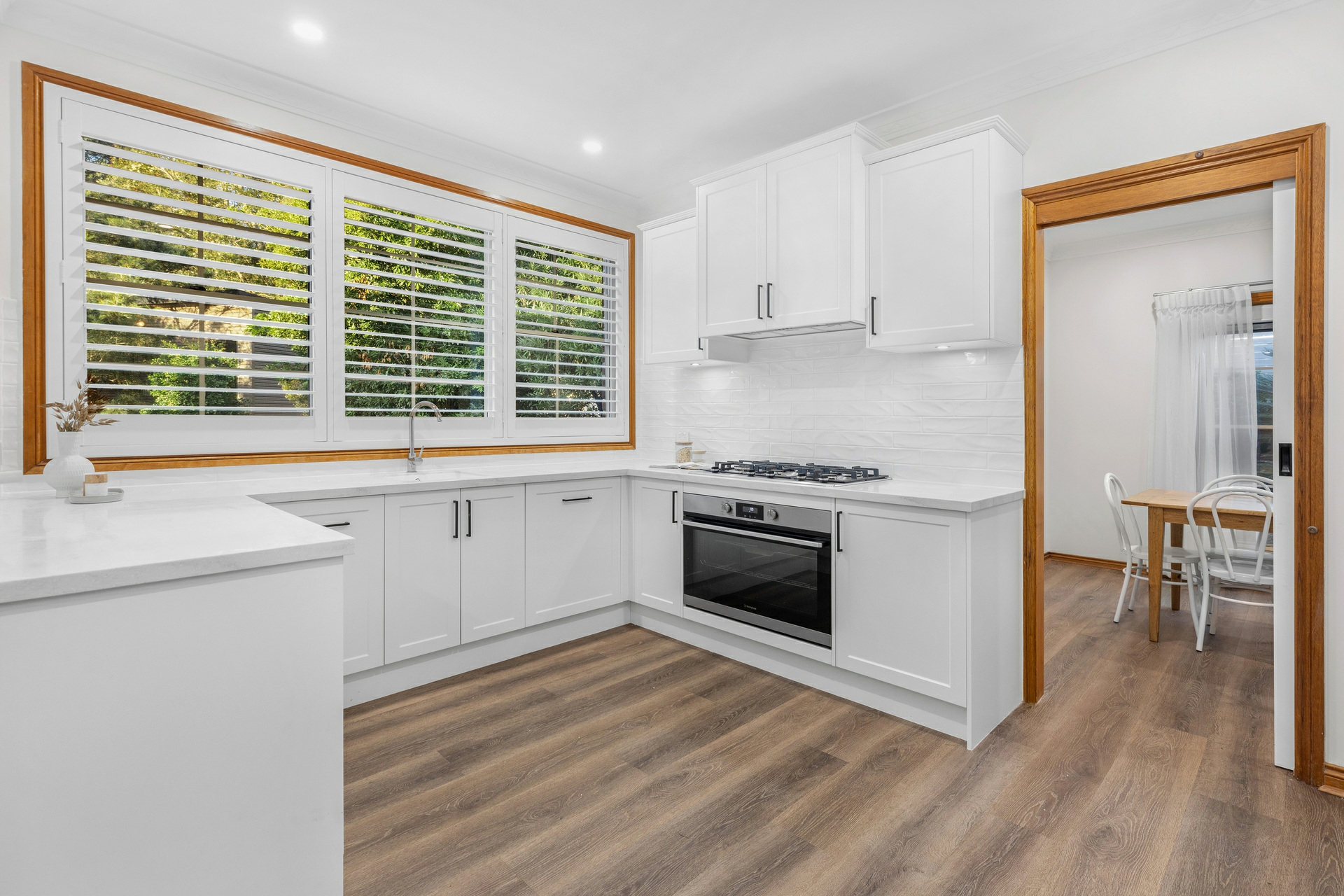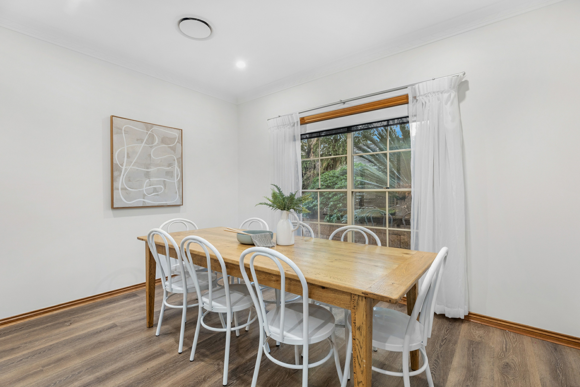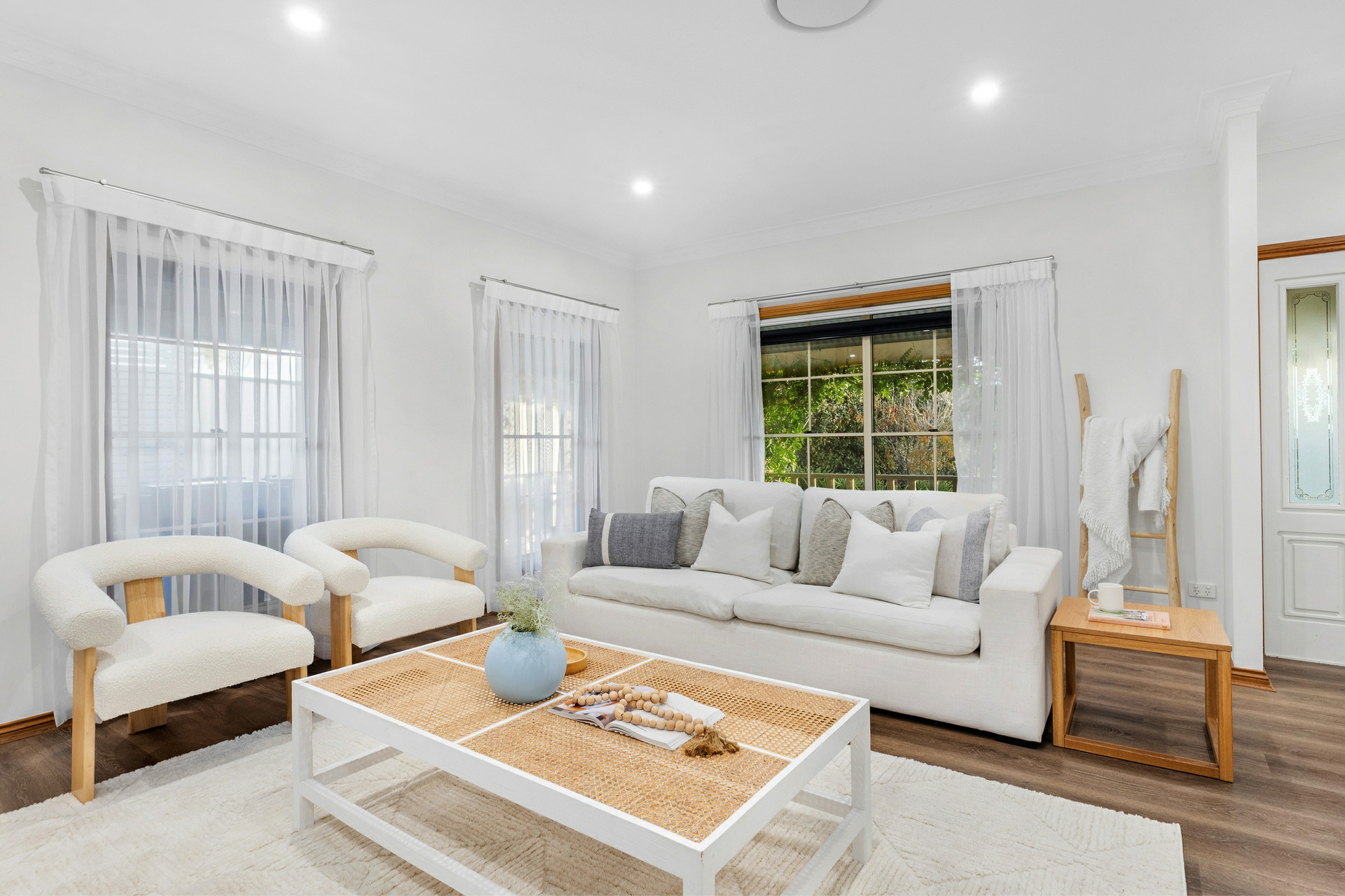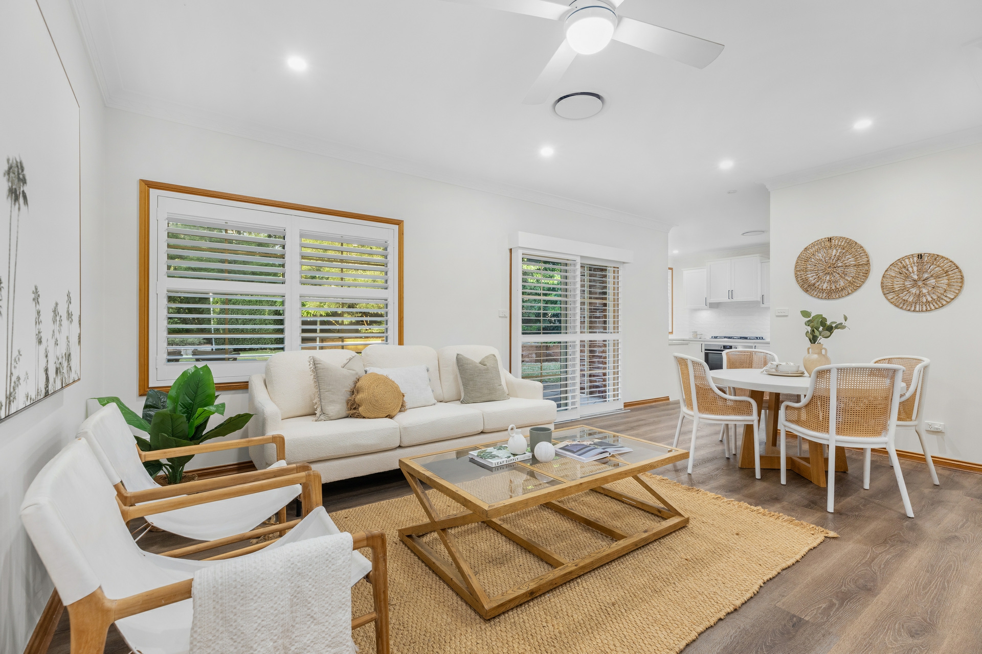 Back inside, the sleeping arrangements are all well-sized with the master bedroom a great retreat, with a walk-in robe and a ensuite. Each of the remaining bedrooms includes built-in robes, ceiling fans, and plush carpeting for added comfort. The renovated main bathroom features a deep soak bath, separate shower, and his and hers vanities.