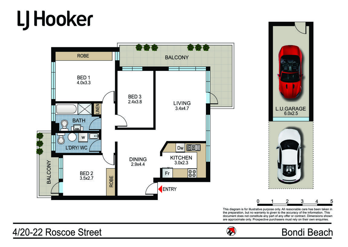 Nestled peacefully at the tree-lined end of Roscoe St, this sunny 3-bedroom apartment presents a superb opportunity in one of Bondi's most sought-after pockets. Occupying a sunlit corner position in a boutique security block, the home is secluded and peaceful yet just a short stroll to Bondi's sand, surf, and vibrant café scene, making an ideal coastal retreat complete with 2 generous alfresco balconies and the rare advantage of a lock-up garage.