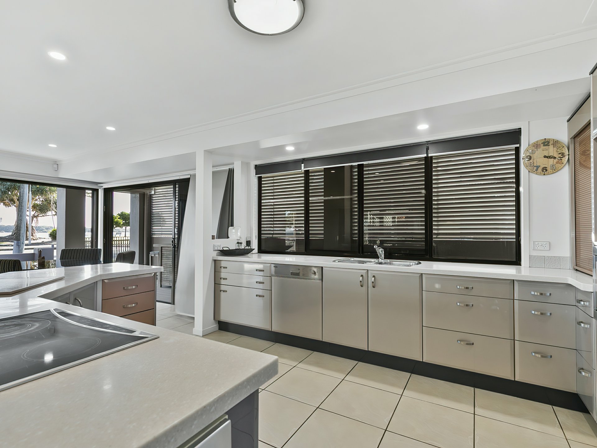 • Chef's deluxe kitchen with electric cooktop and oven, plus ample cupboards and bench space.