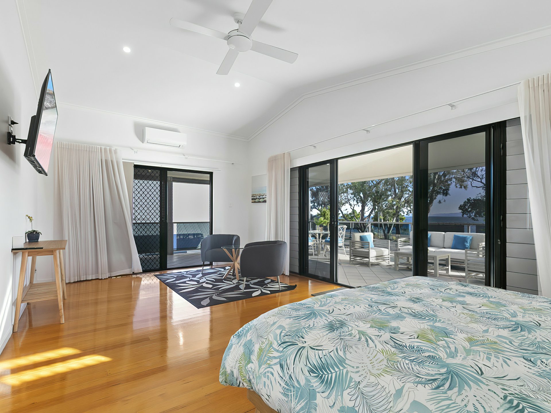 • Spacious air-conditioned primary bedroom boasting impressive water views and has access to the side and front deck.