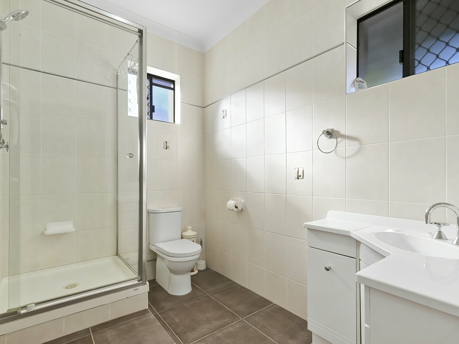 • Bathroom No.2 with floor to ceiling tiles, separate shower & toilet.