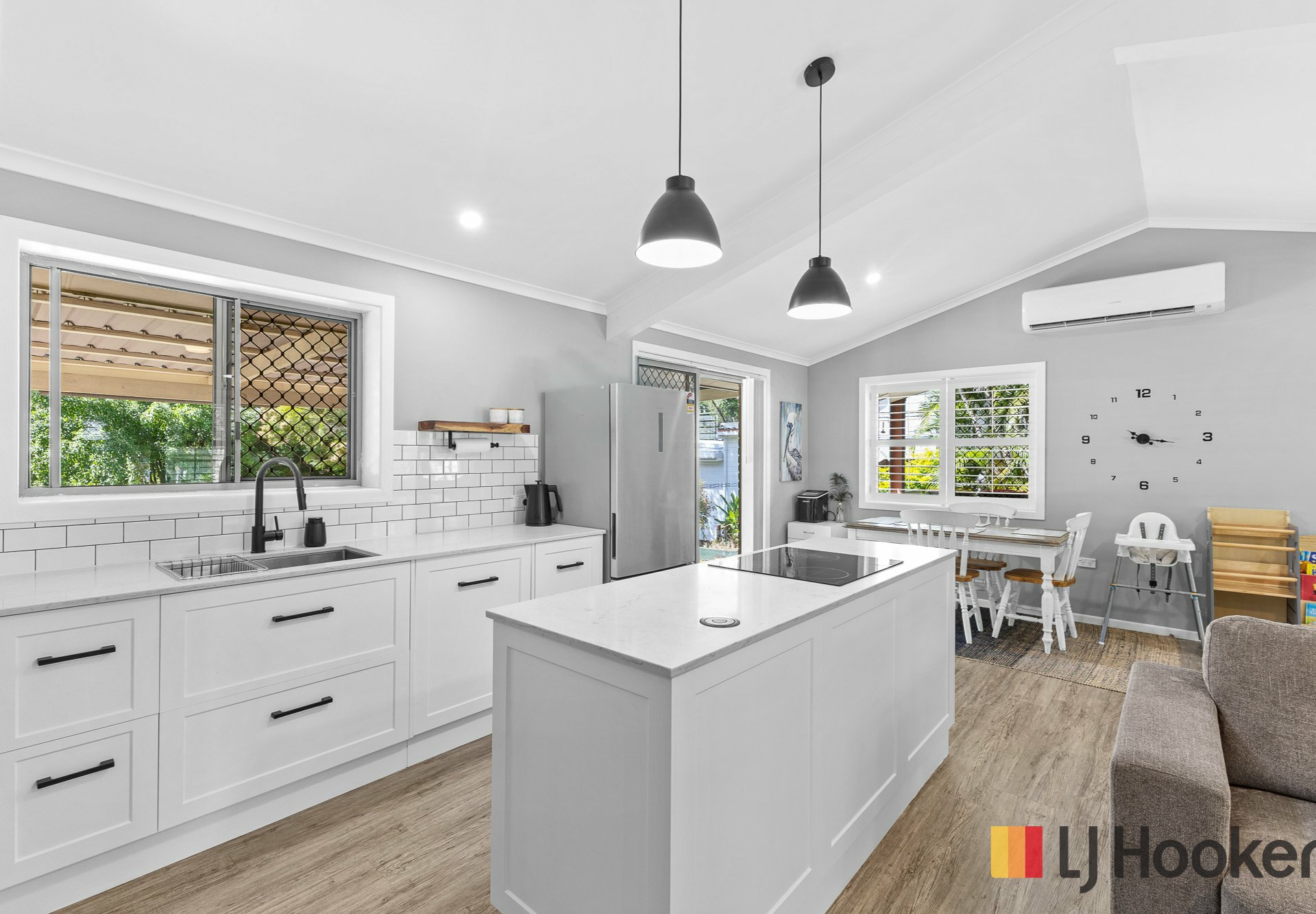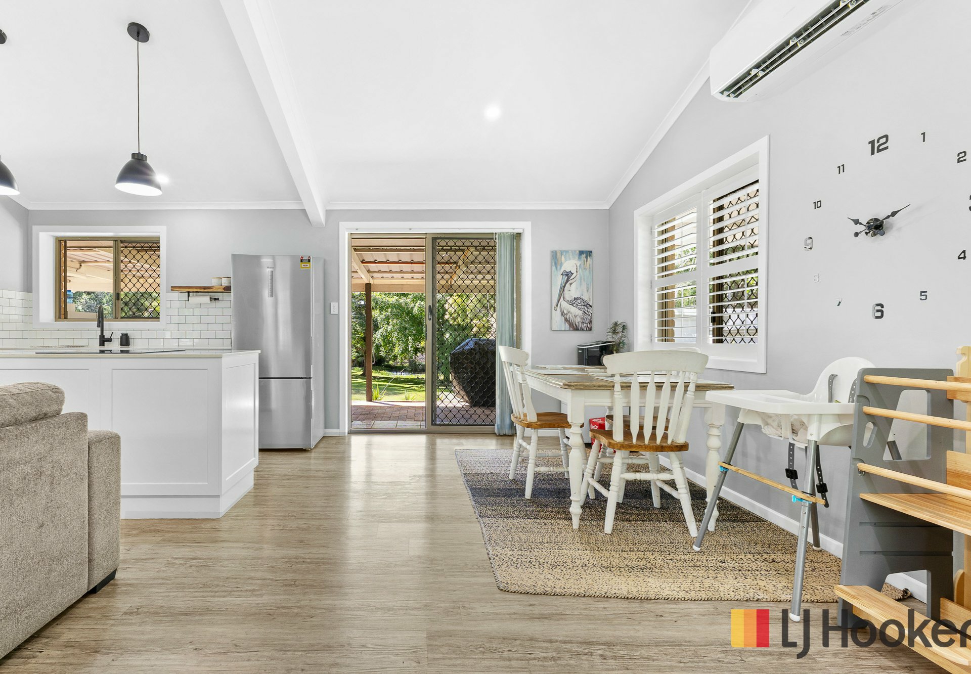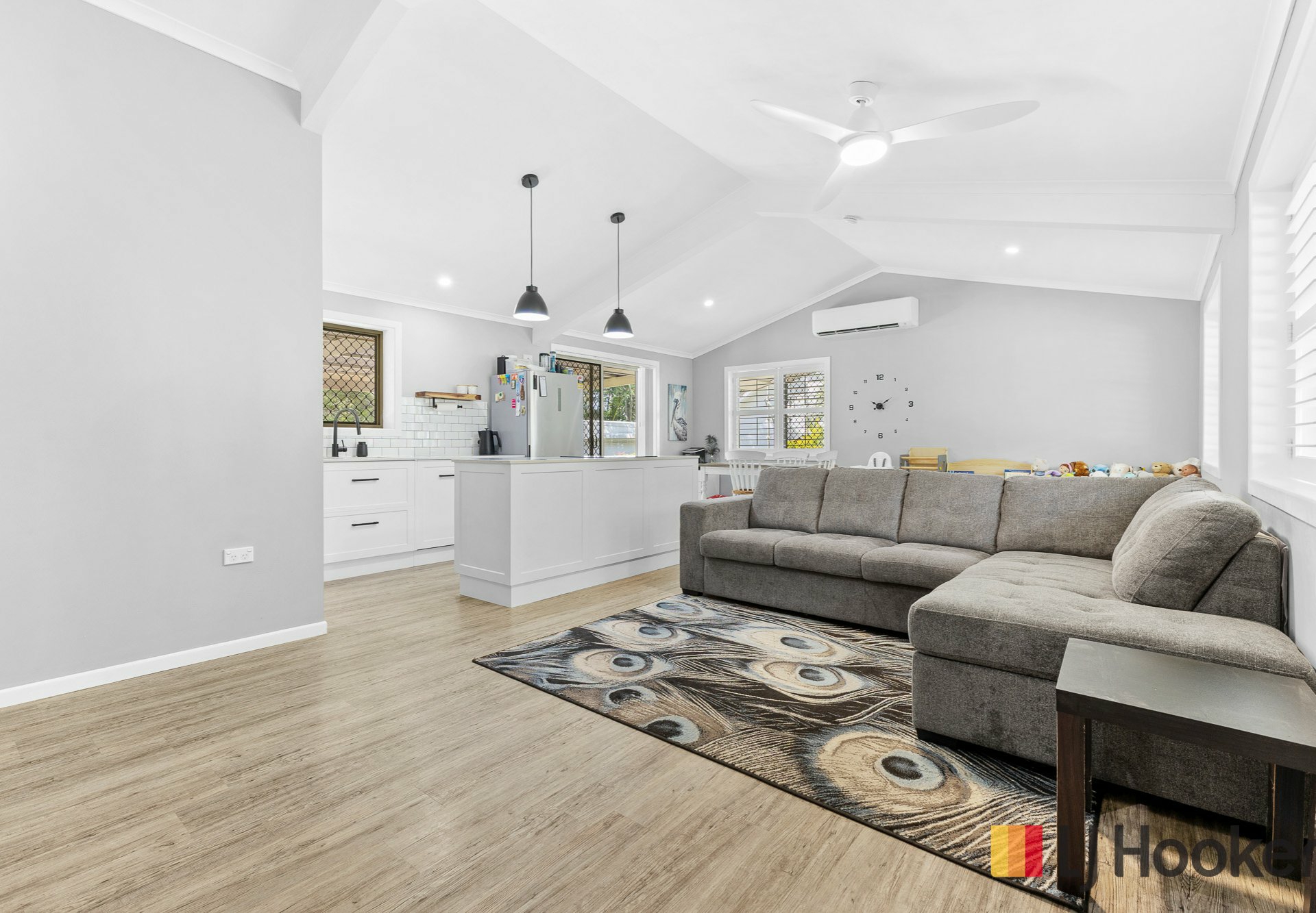 Set on a generous half-acre block, the home welcomes you with light-filled interiors, extra-high exposed beam ceilings, and a spacious open plan living and dining area designed for relaxed living. Recently repainted throughout, it features stylish, hard-wearing vinyl flooring, ceiling fans, and air-conditioning to the main living area for year-round comfort.