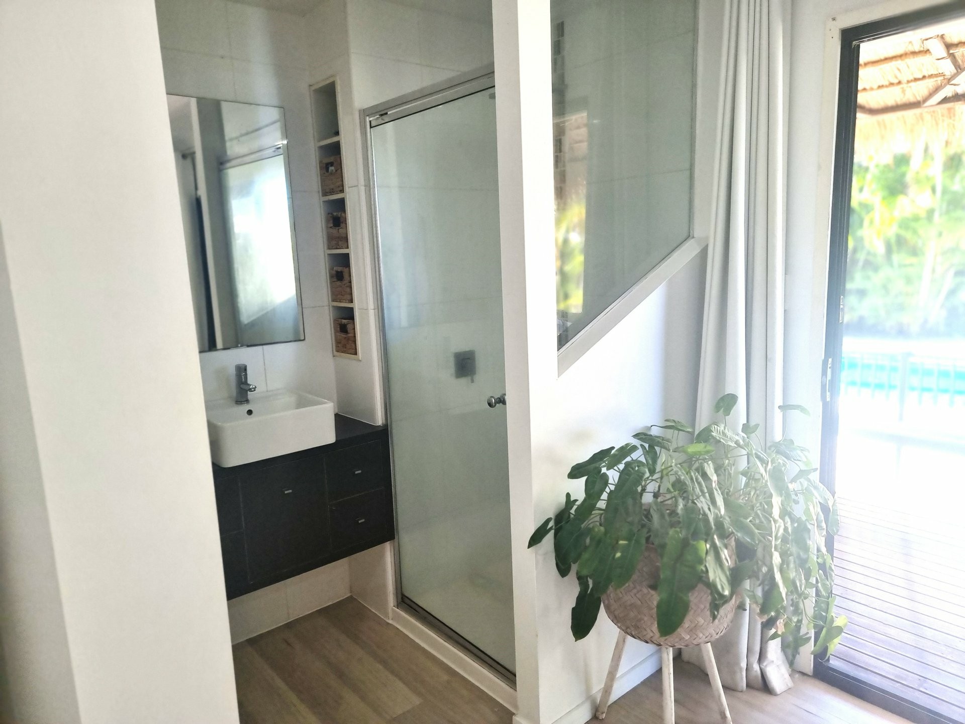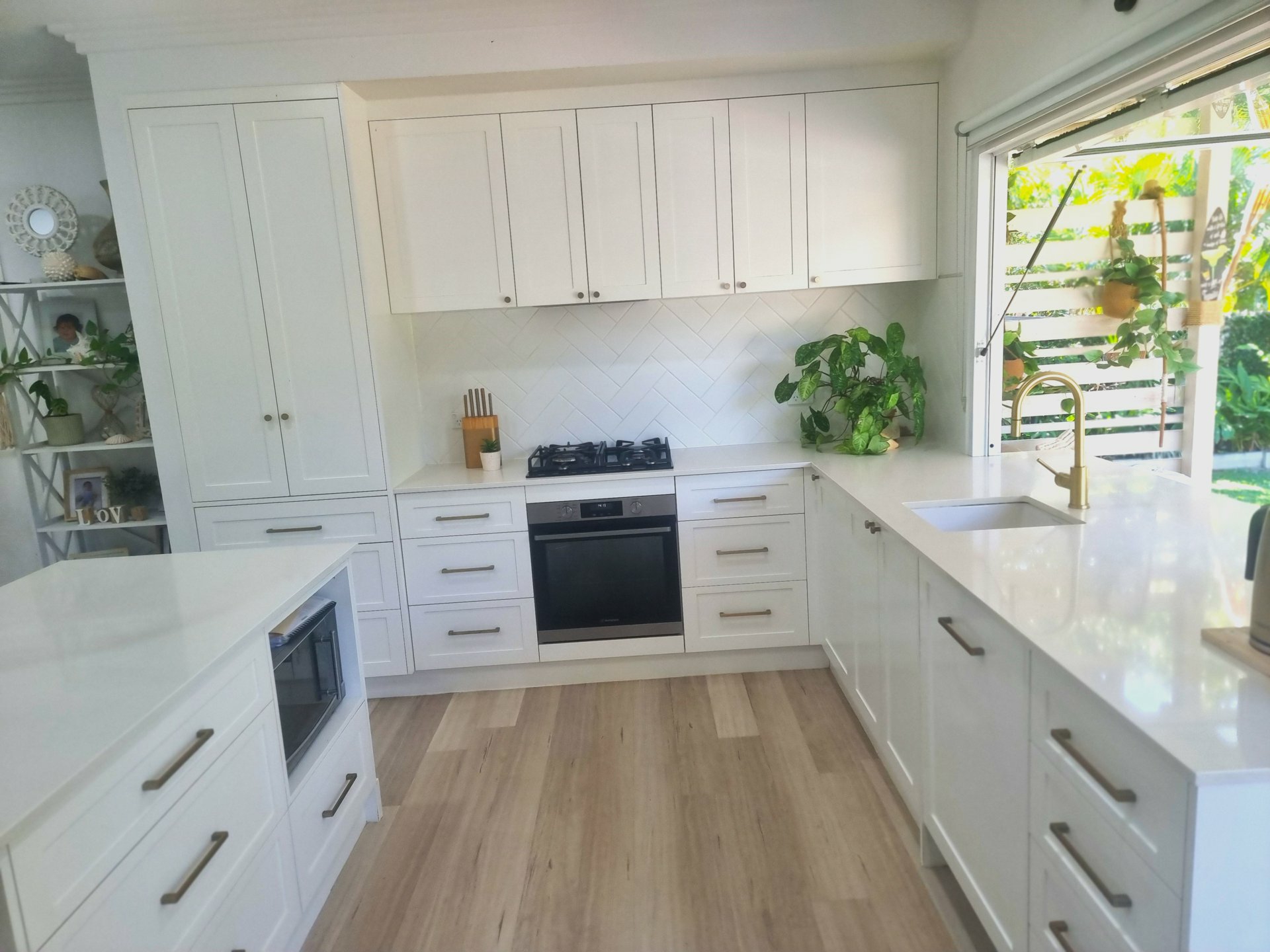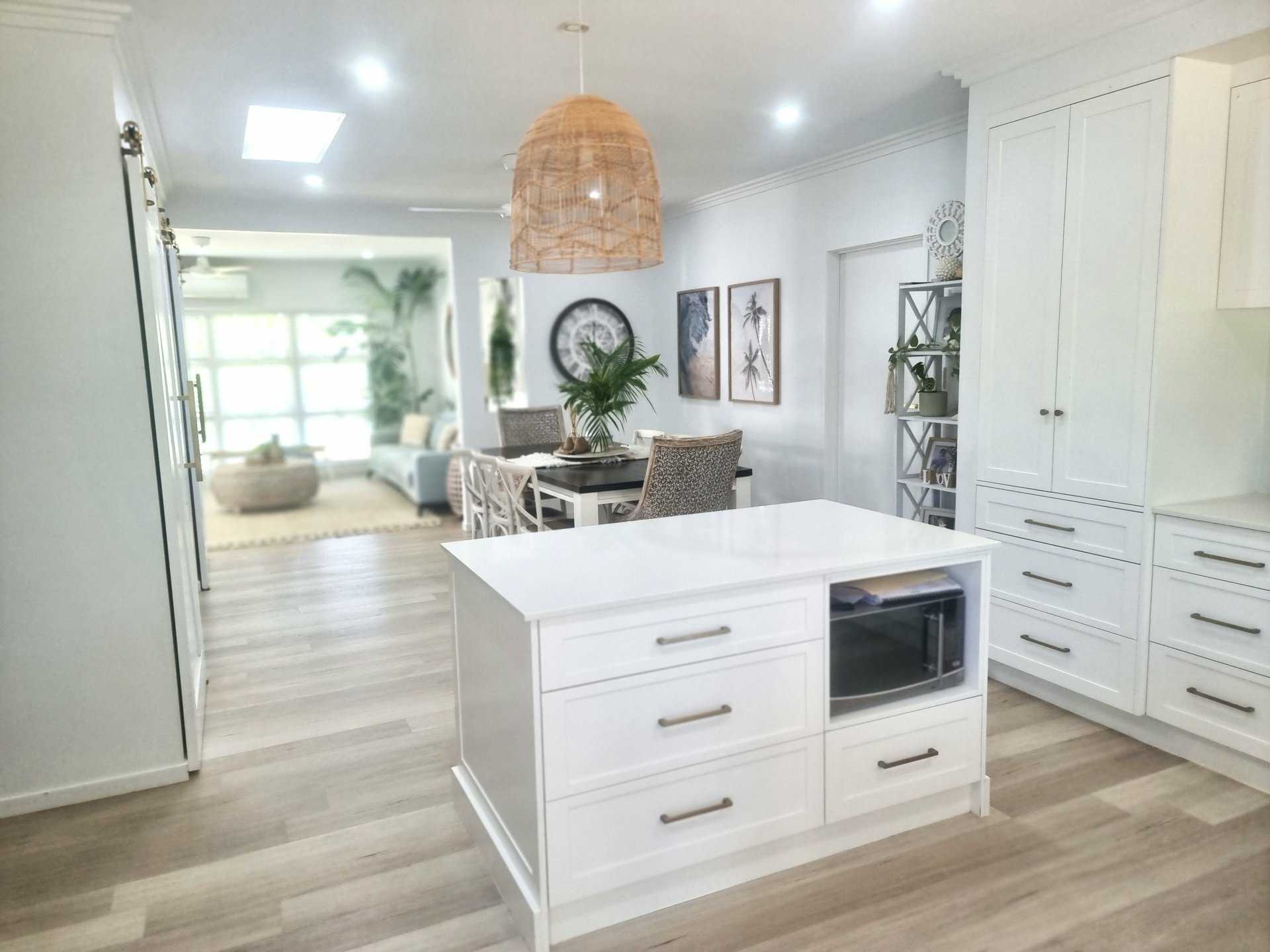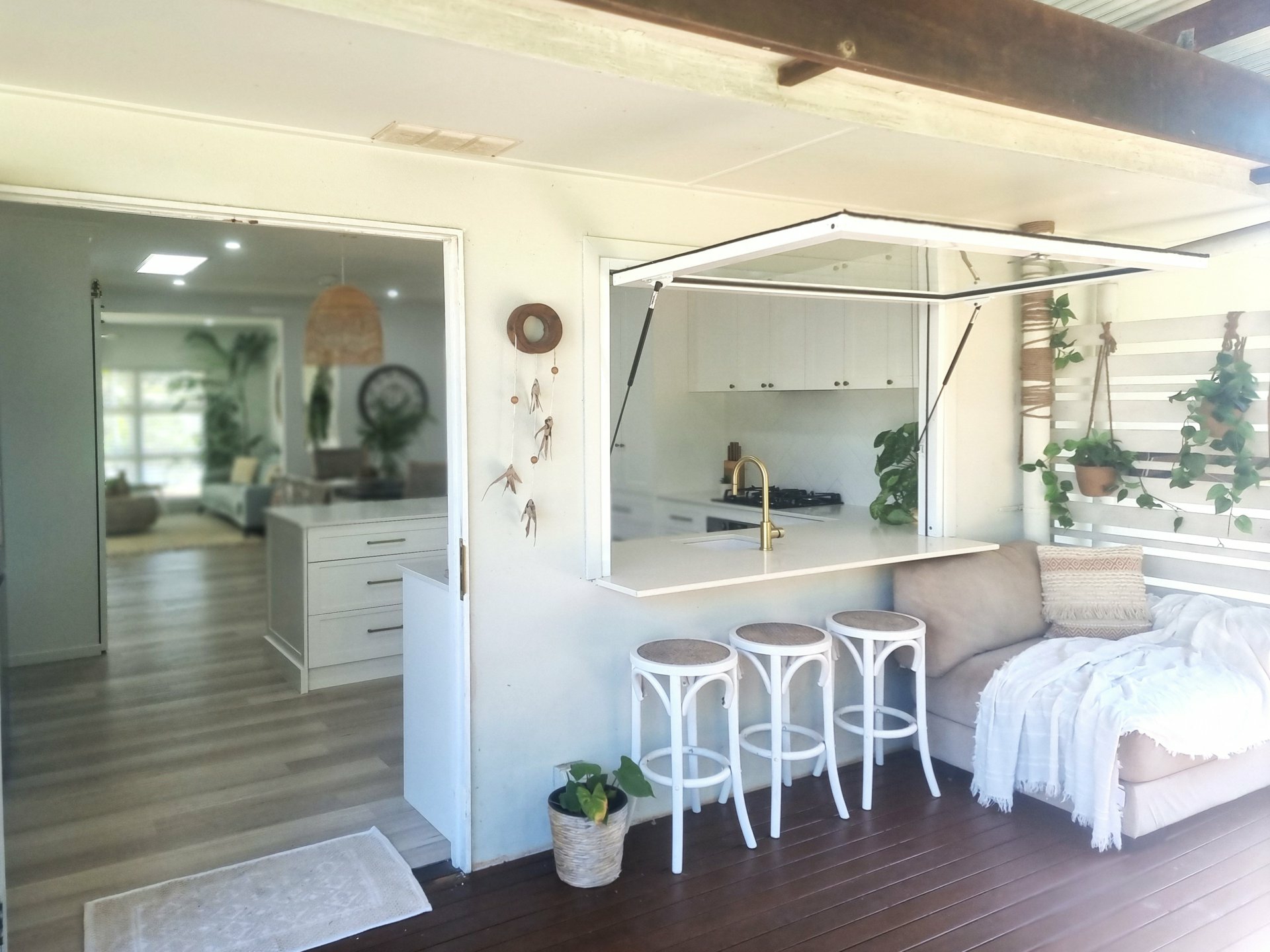 The open plan living spaces enjoy an abundance of natural light and capture the sea breezes. A generous size living and dining area adjoins the impressive, designer kitchen.. The server window to the back deck makes entertaining and family barbeques a breeze.