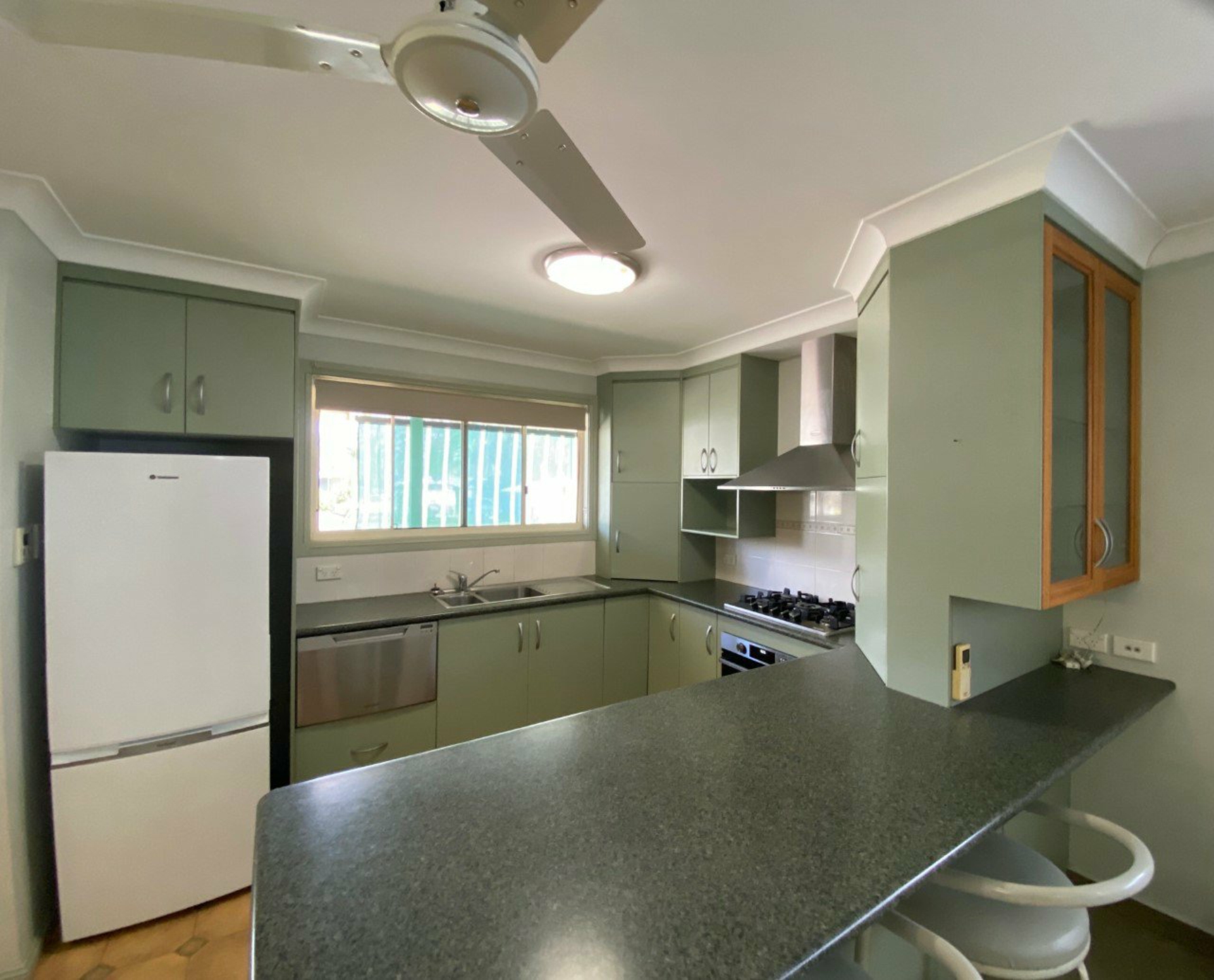 - Full sized kitchen with long bench space which doubles as a breakfast bar, stainless steel kitchen appliances including gas cooktop, electric oven, range hood and dishwasher drawer, fridge - ample storage with overhead and under bench cabinetry as well as utility and display cupboards