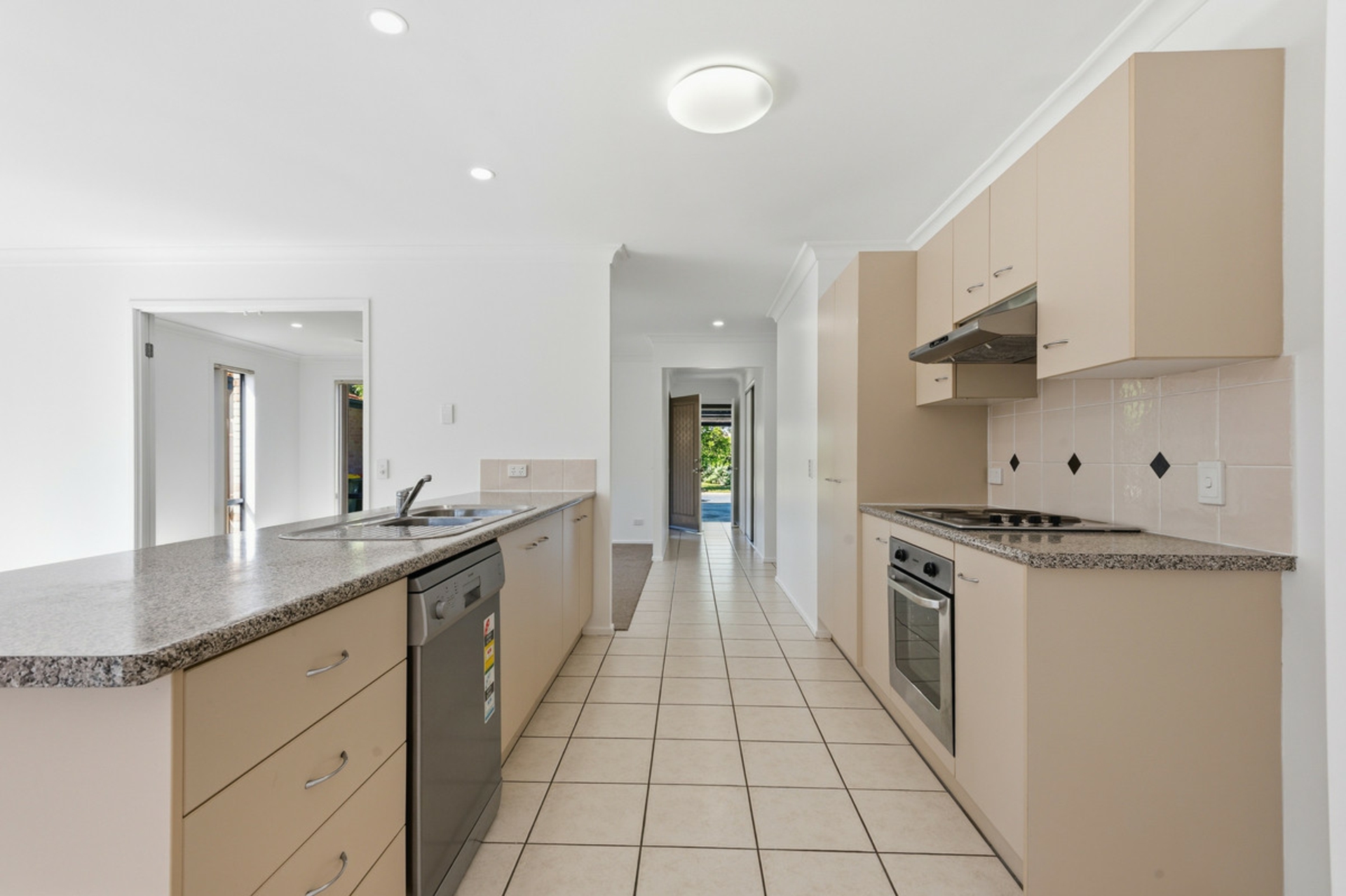 • A well-presented kitchen with plenty of bench space and storage. There is an electric cooktop, wall oven and dishwasher.