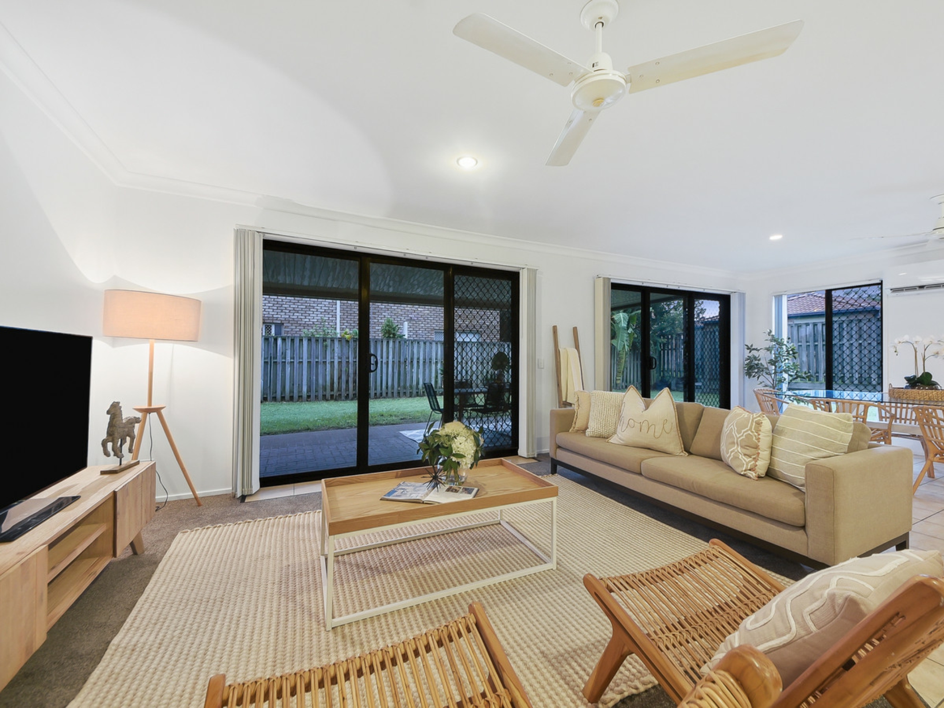 - The living and dining area flows out seamlessly to a large covered alfresco entertaining area, which is perfect for outdoor dining and can accommodate a large table and outdoor lounge