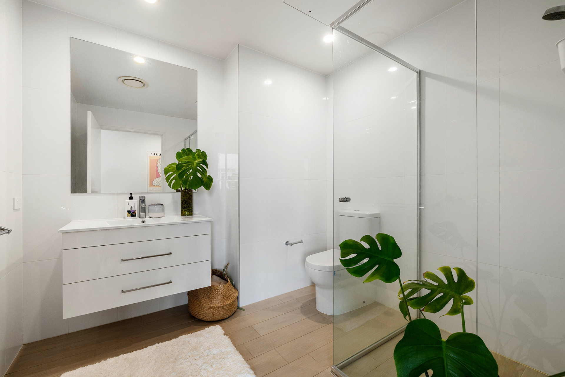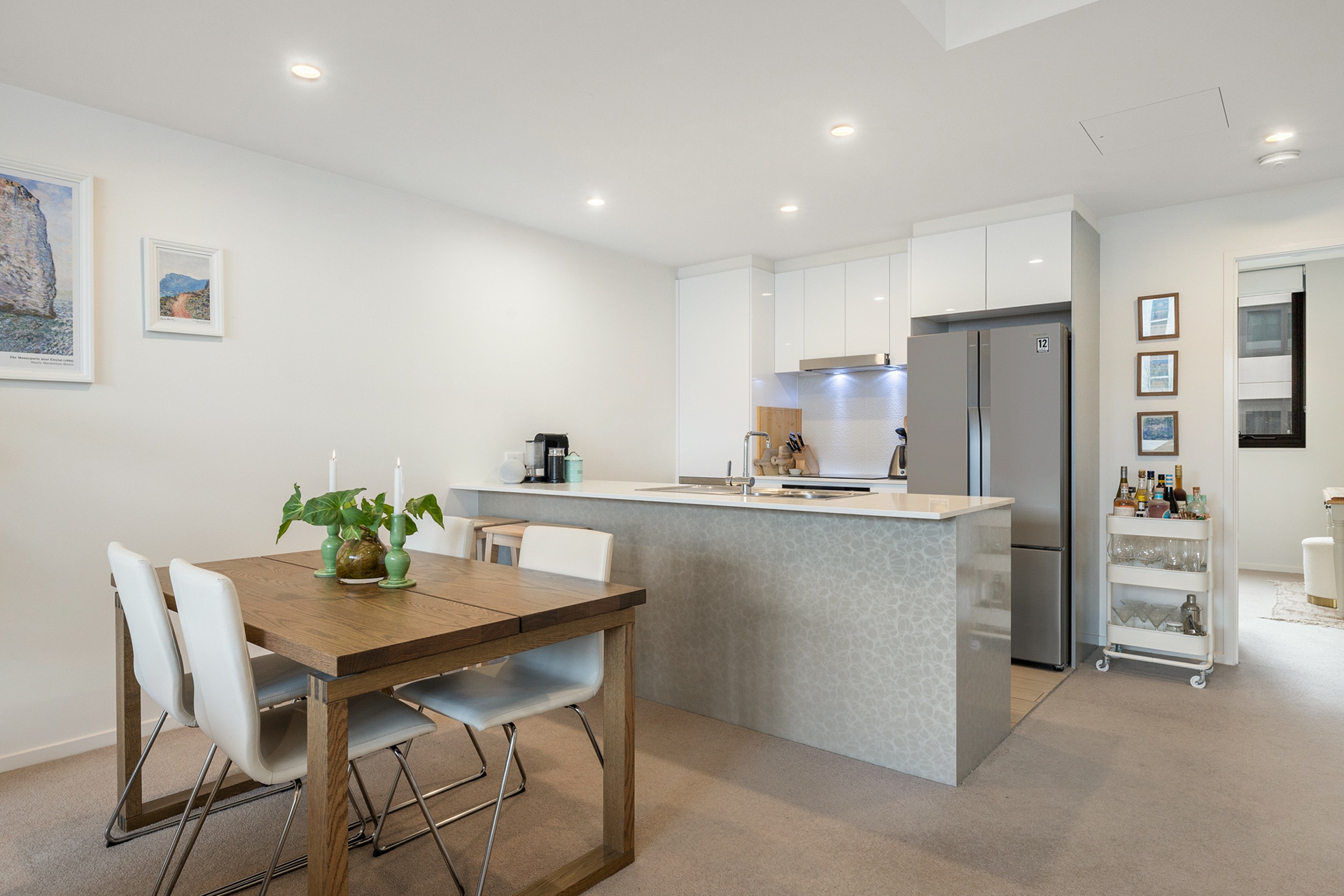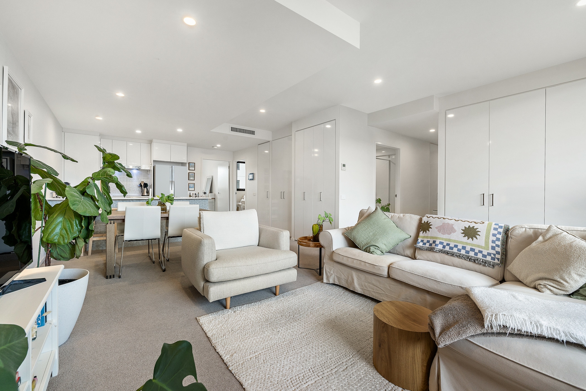 Storage is exceptional, with six (yes, six) cleverly integrated cupboards in the living space. A European laundry is neatly tucked away, and ducted reverse-cycle heating and cooling ensure year-round comfort.
