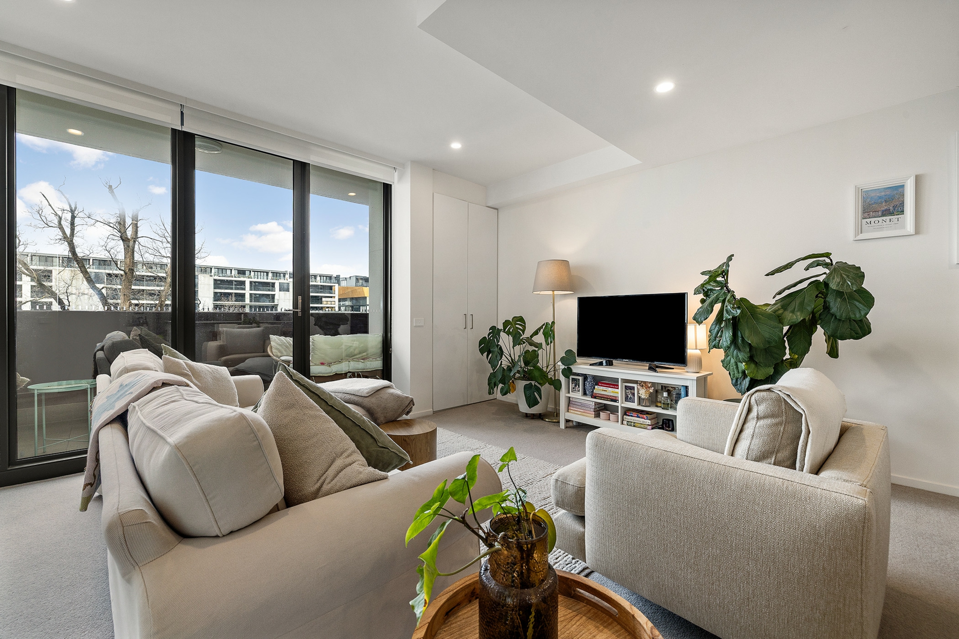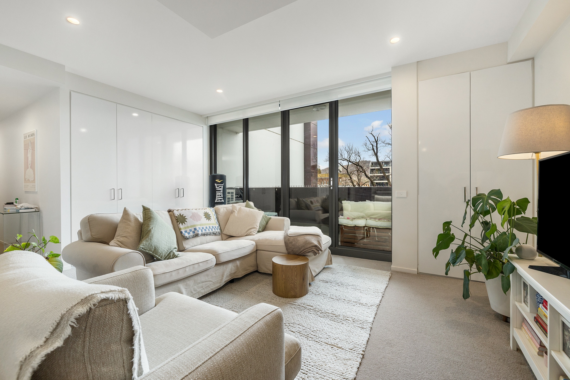 The sleek kitchen overlooks the dining and living area and features a breakfast bar and quality appliances. Both bedrooms are impressively sized, with the main bedroom enjoying beautiful views of Black Mountain Tower, a stylish ensuite and walk-in-robe.