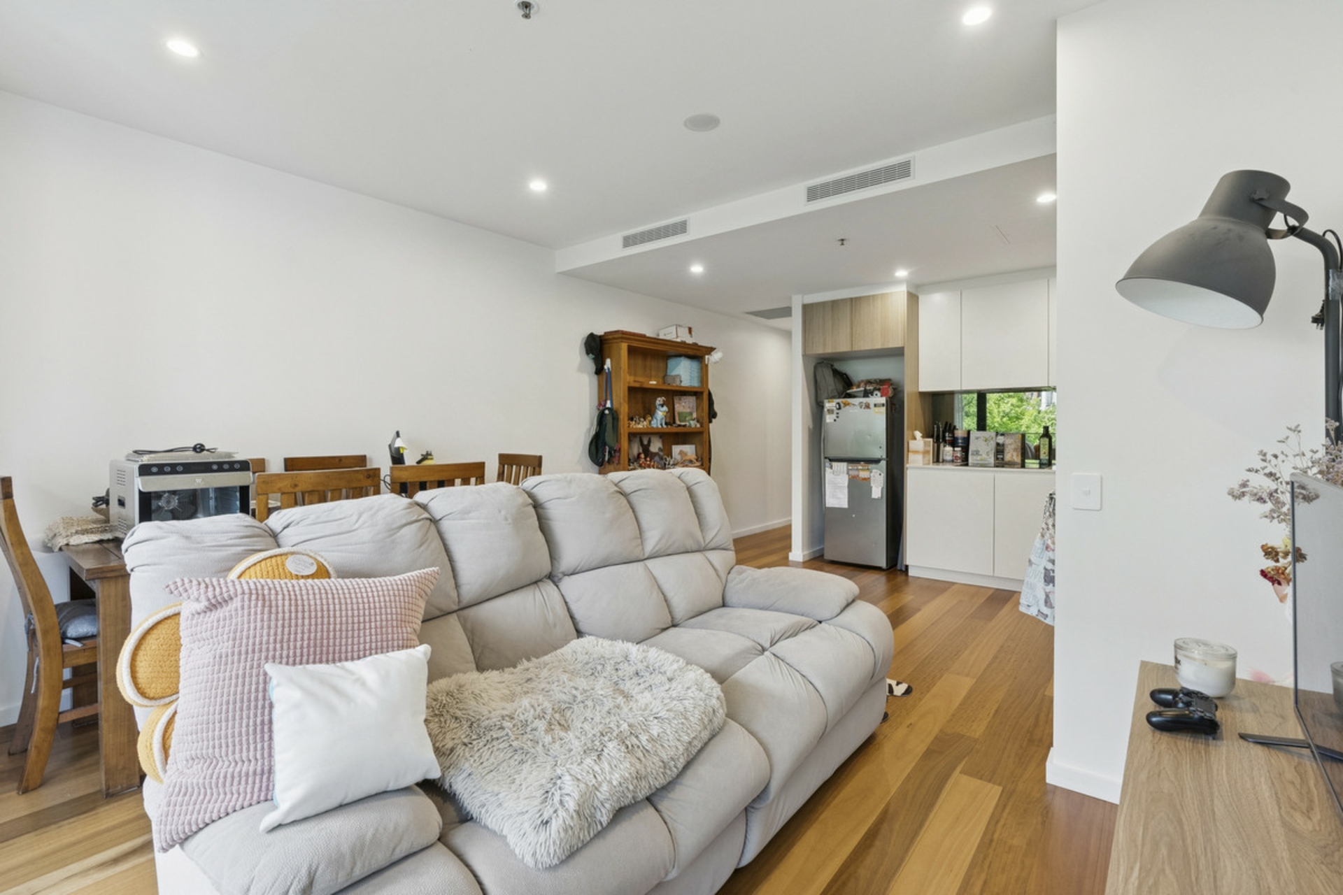 This beautifully designed one-bedroom apartment is located on the fourth floor of the contemporary Dawn precinct in Braddon, directly opposite Canberra Centre and offering the perfect blend of urban convenience and stylish living. The open plan living and dining area is flooded with natural light through full-height double-glazed sliding doors, which flow onto a private undercover balcony, an ideal space to relax or entertain.
